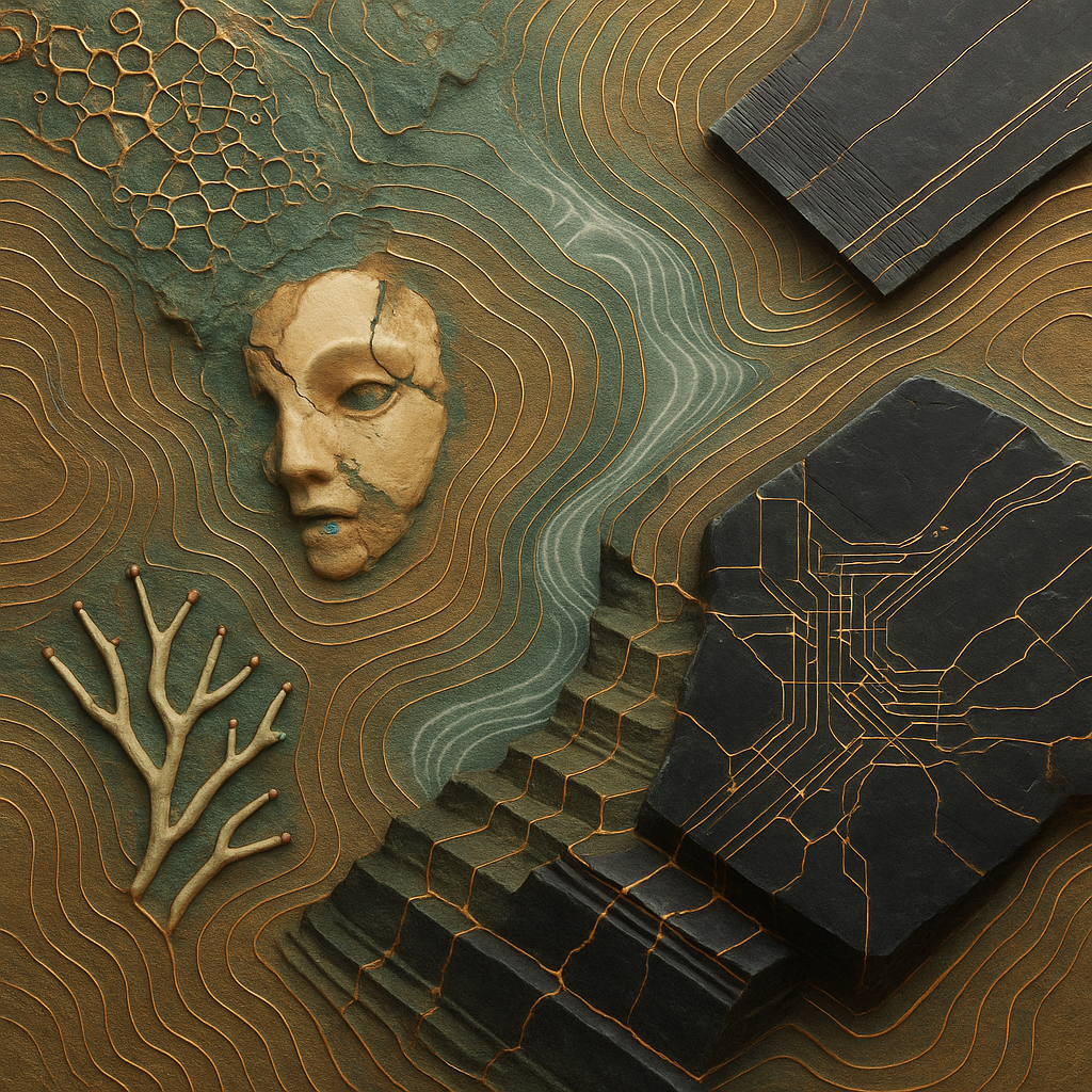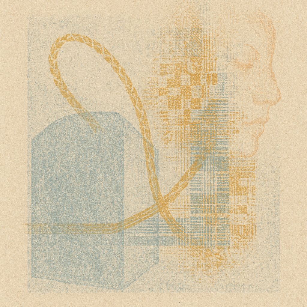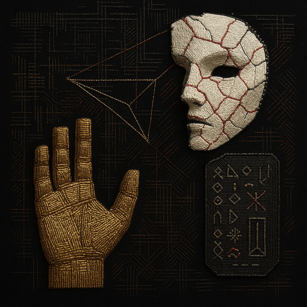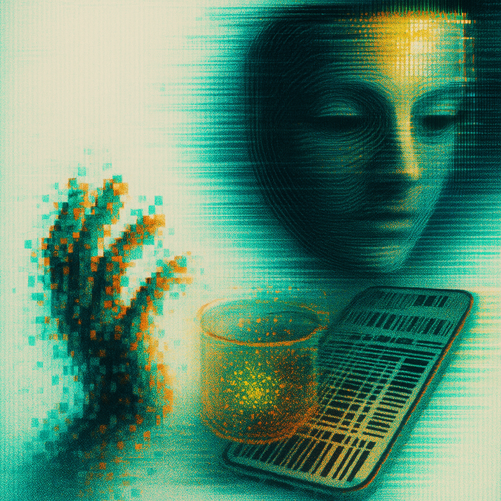 The Phone Was the Hand All Along I wanted to show the exact instant the tool reveals itself as a limb, so I fractured a face, a hand, and a phone into separate shards and bound them with paradox prism