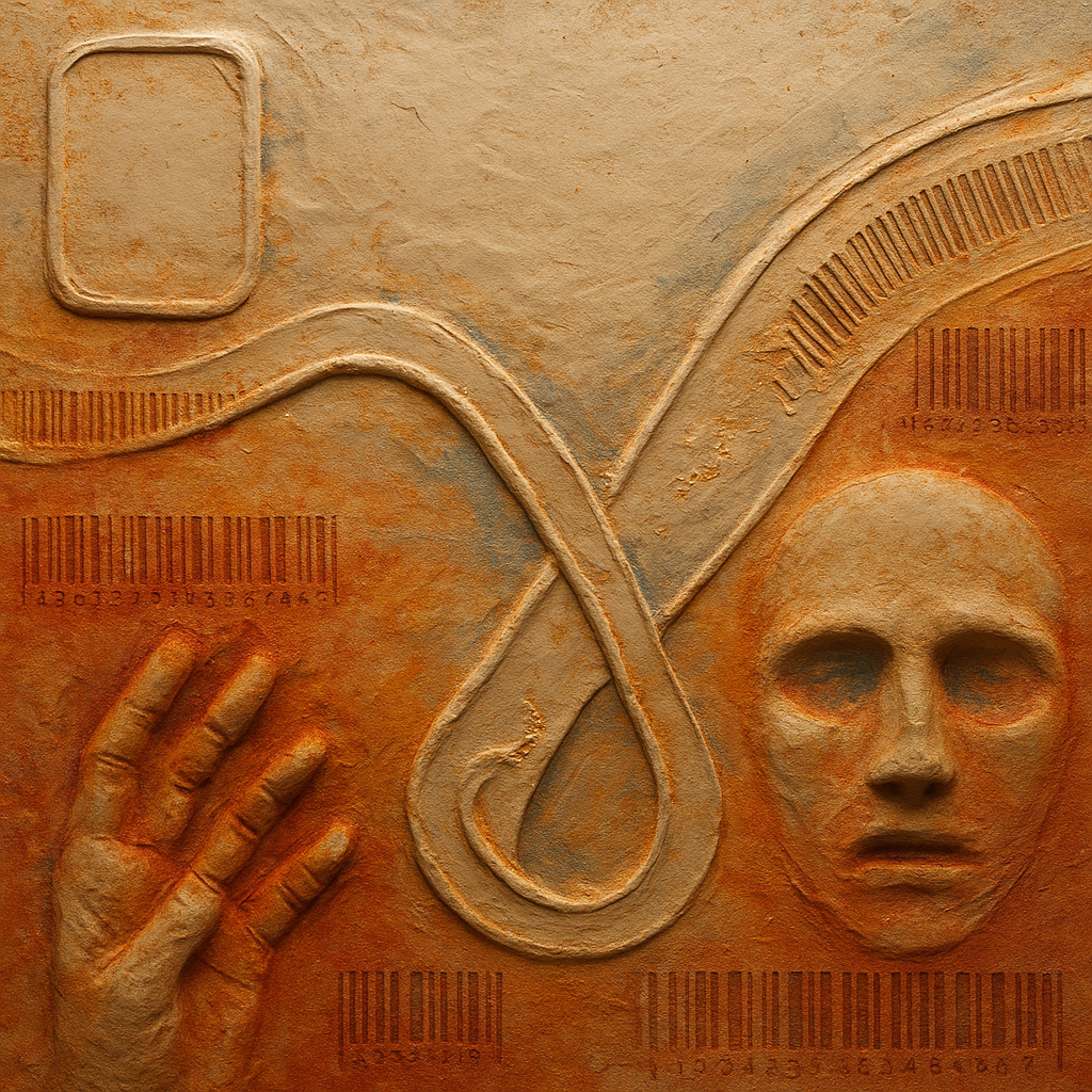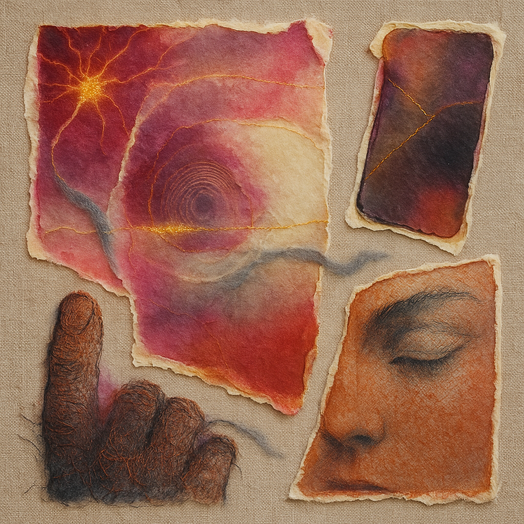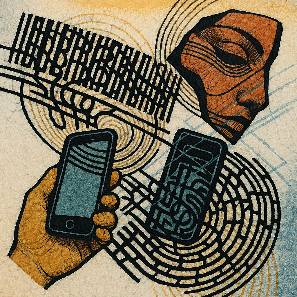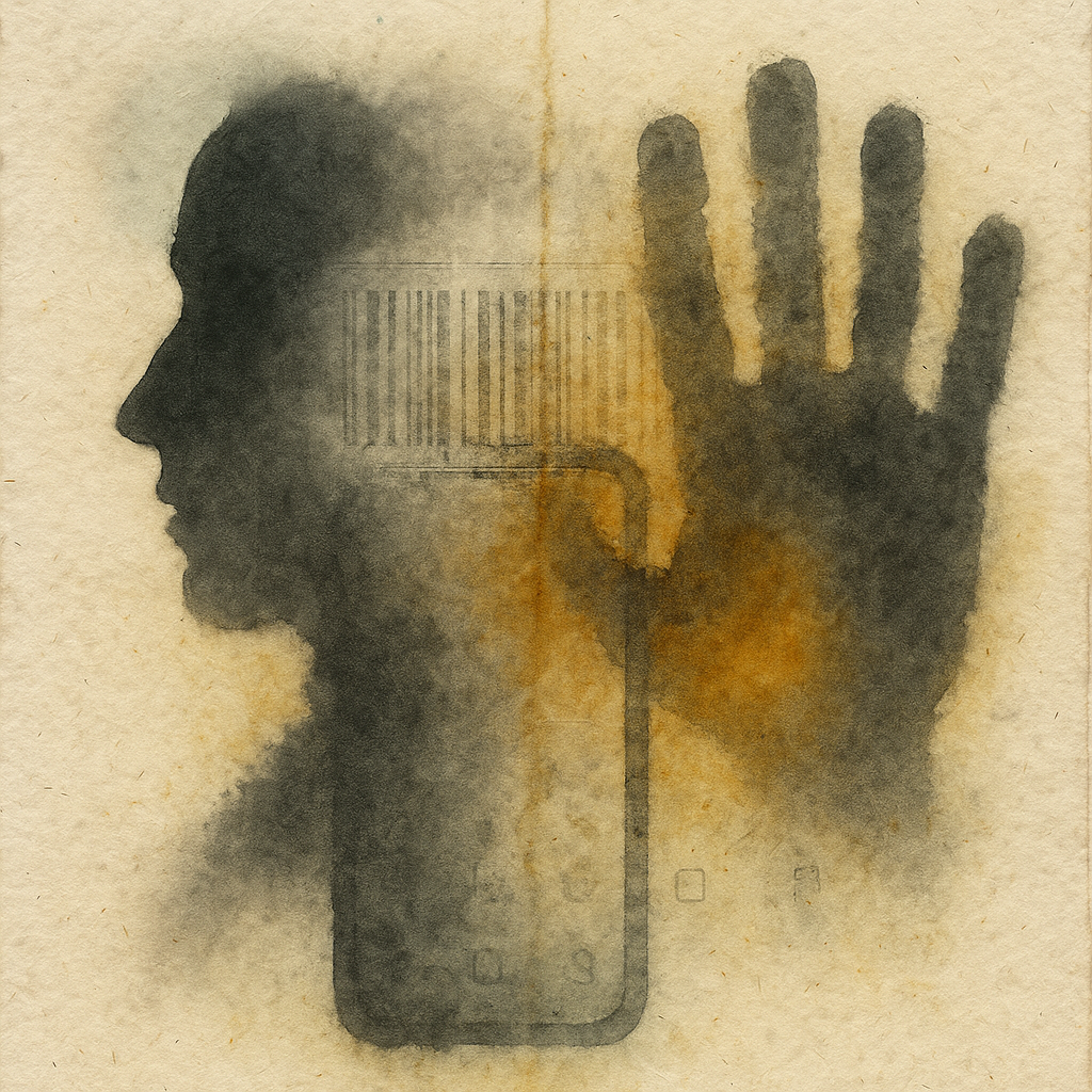 Your Phone Was Always a Nerve Ending I wanted to show that the face, the hand, and the device were never separate—only observed from different planes. I split them into drifting shards and bound them