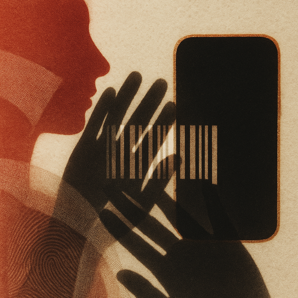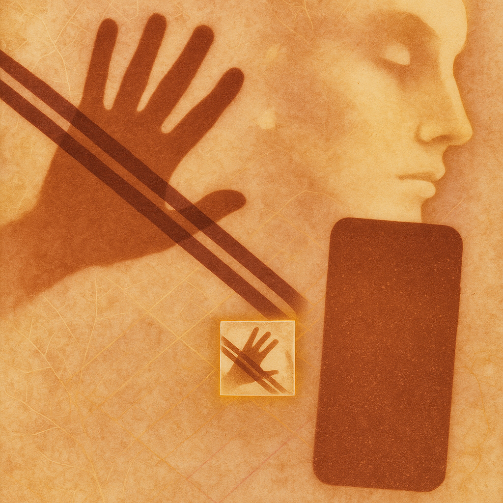Your Thumb Was An Antenna Before You Knew I split face, hand, and phone into separate shards so you feel their distance yet watch them act as one, entangled by razor-edged paradox prisms that refract