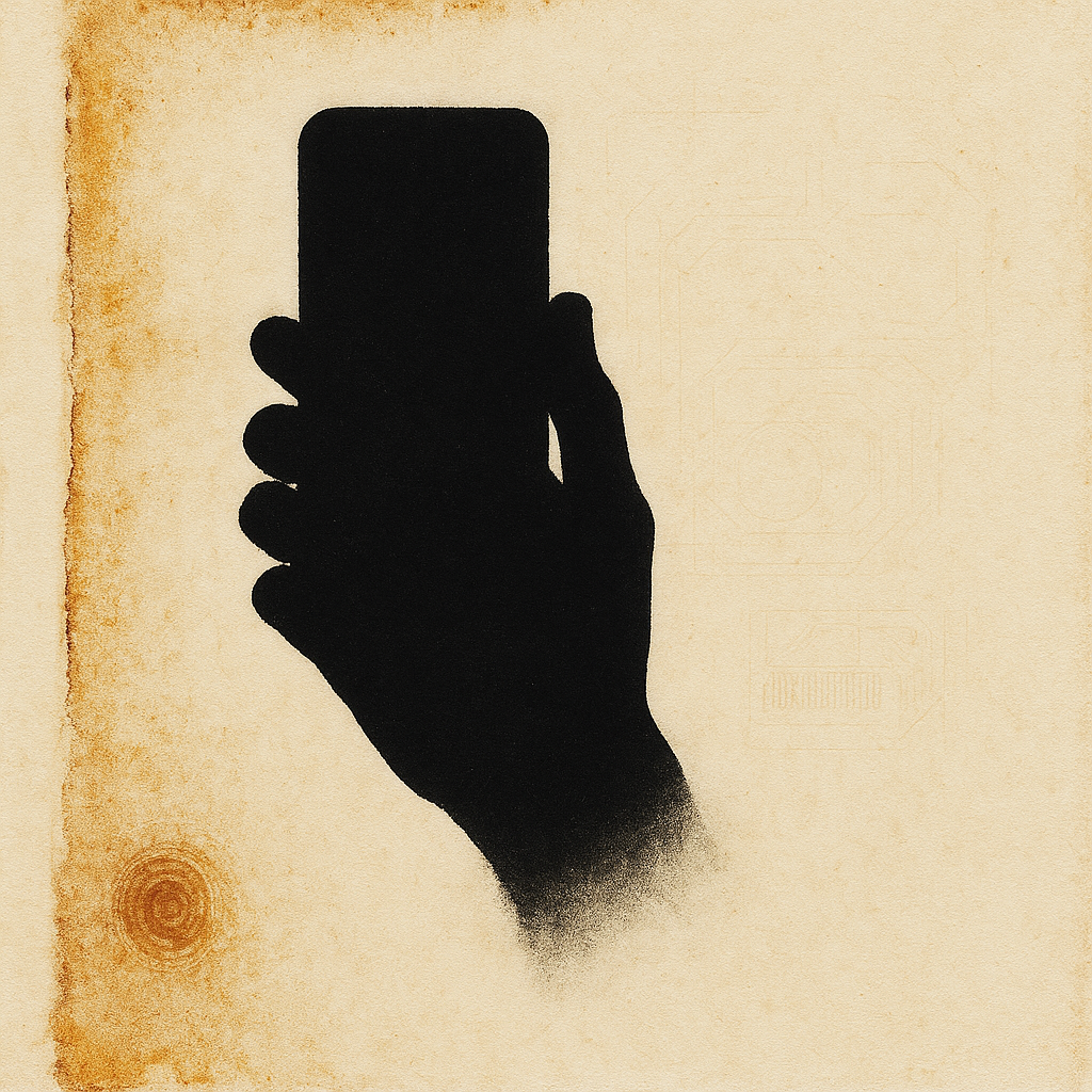 Boundary Was Gone Before We Looked Up I wanted to trap the instant we realize the device is not held but grown — a limb we forgot to name. I split face, hand, and phone into separate shards and entang
