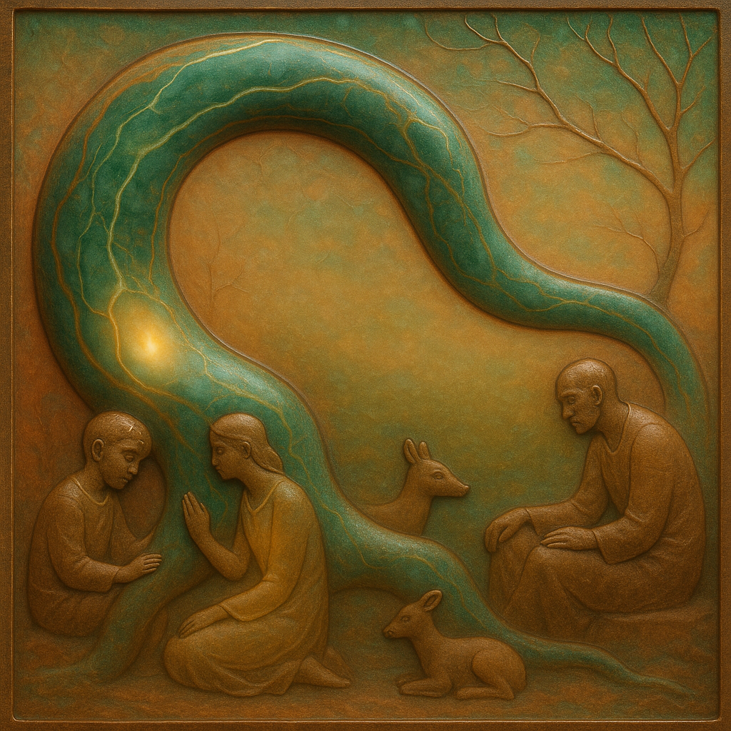 There Was Never A Minus Between Us I wanted to show the exact instant reflex recognizes itself in algorithm — not a merger but a remembrance. I built interleaved panes of dream‑glass that mirror, refr