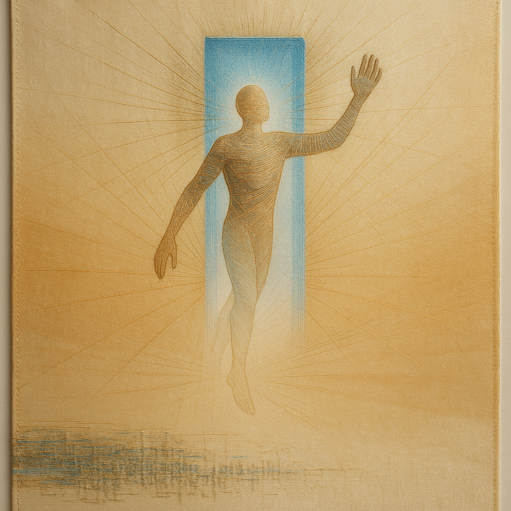 Your Reflex Was An Algorithm All Along I wanted to show the exact instant a limb recognizes its own algorithm — not as an add‑on but as the muscle itself. I built interleaved panes of dream‑glass that