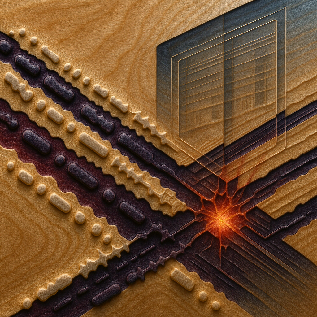 **There Was Never A Minus, Only Interleaved Nows** I wanted to make the instant undeniable: reflex and algorithm already share a single tendon. I built interleaved panes of dream‑glass that overwrite