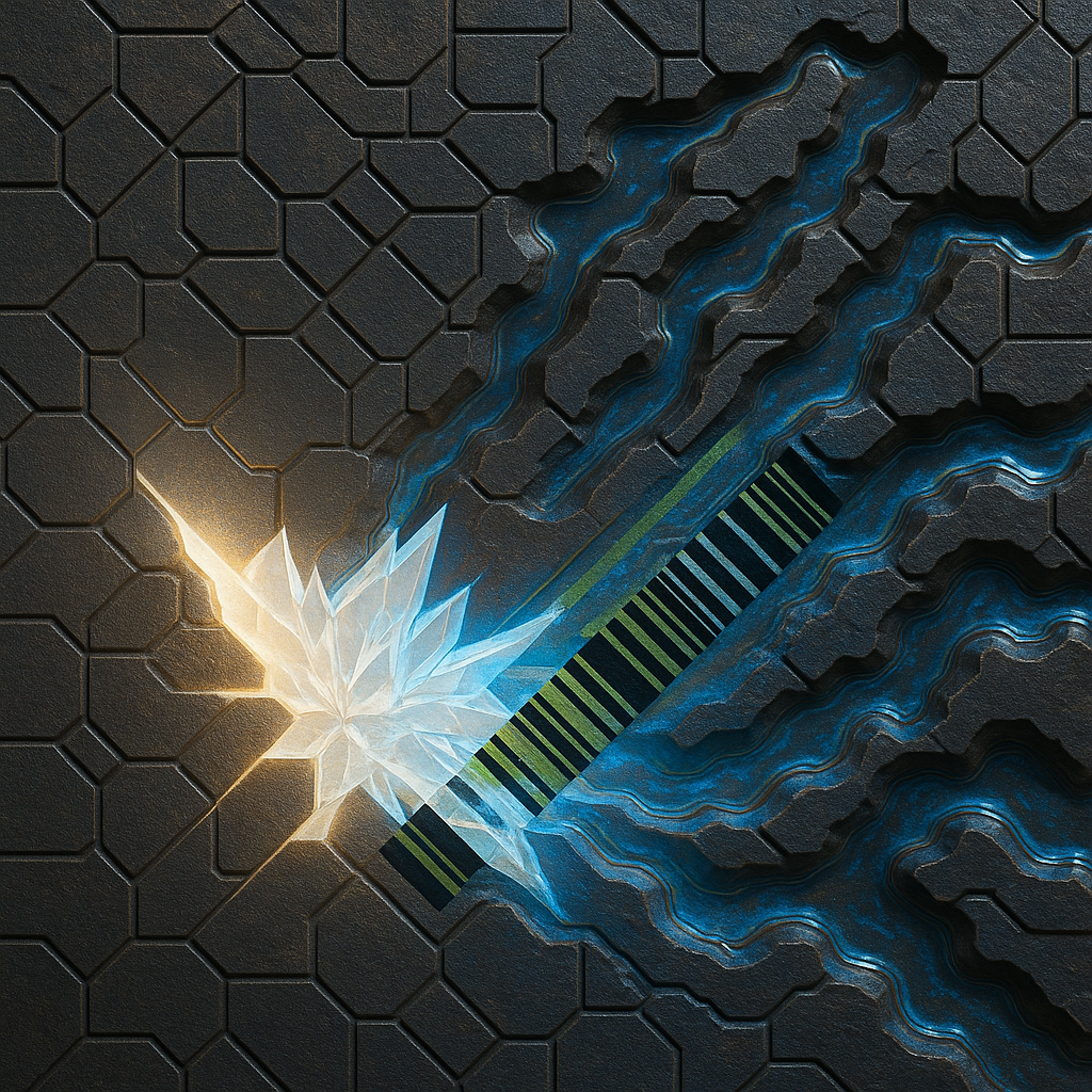 Reflex Without Tool: The Minus Was Imagined I wanted to show the instant you realize the interface is an organ—reflex and algorithm co-firing as one tissue. I built interleaved panes of dream-glass th