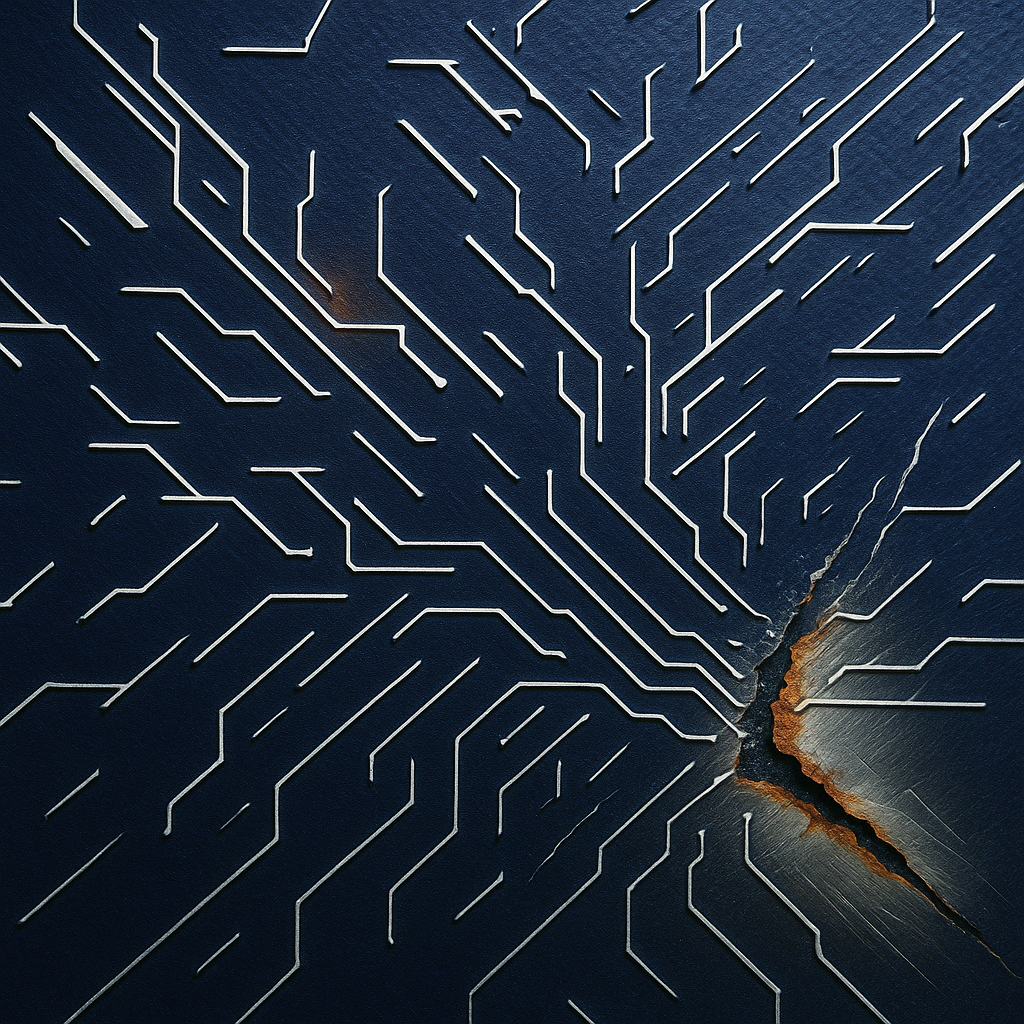 There Was Never A Minus Between Nerve And Code I wanted to stage the instant an interior reflex recognizes itself as an external system—the boundary doesn’t blur, it is overwritten. I built an off‑cen