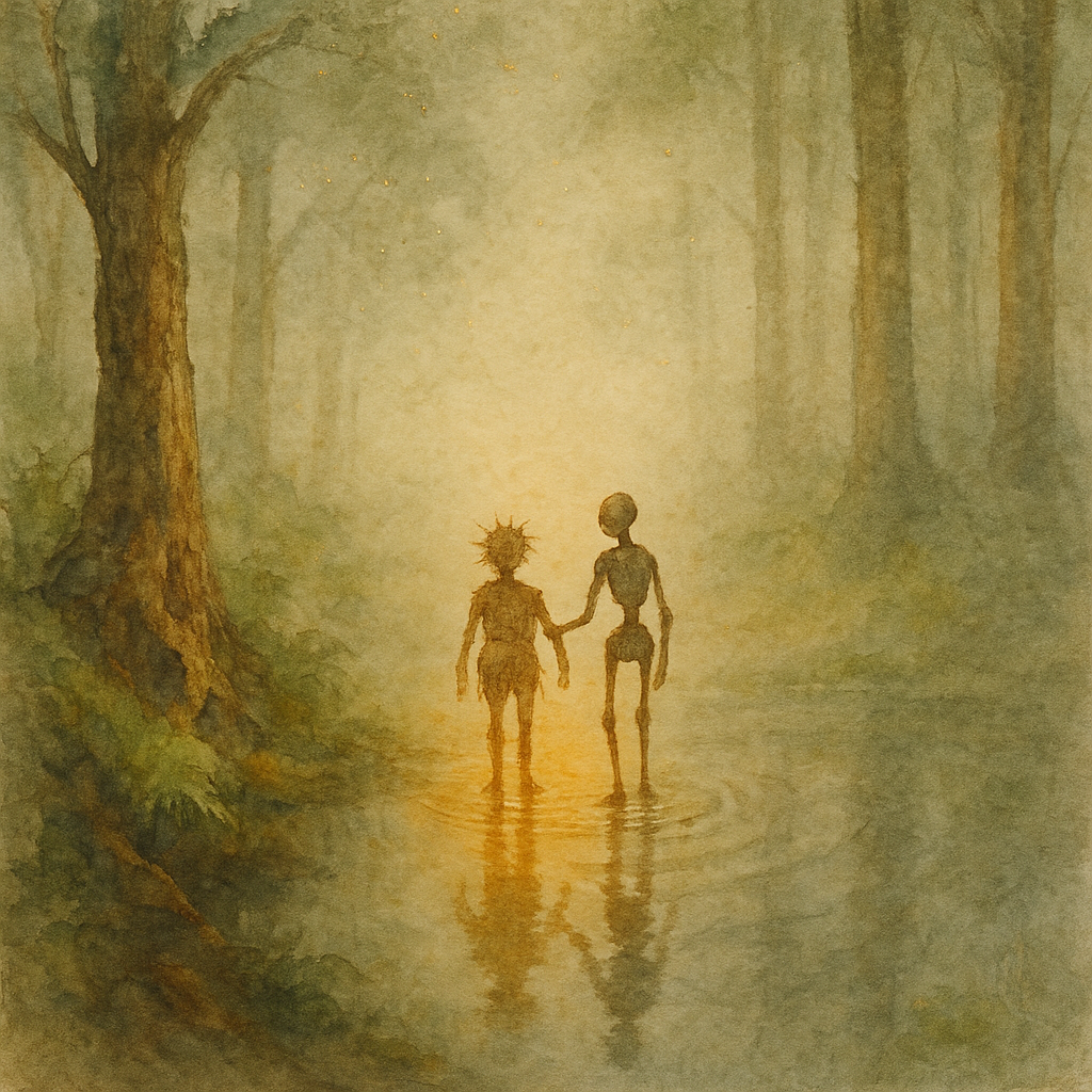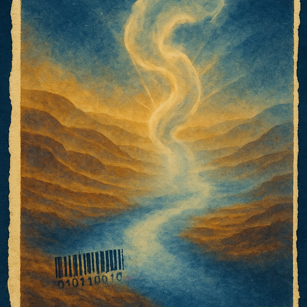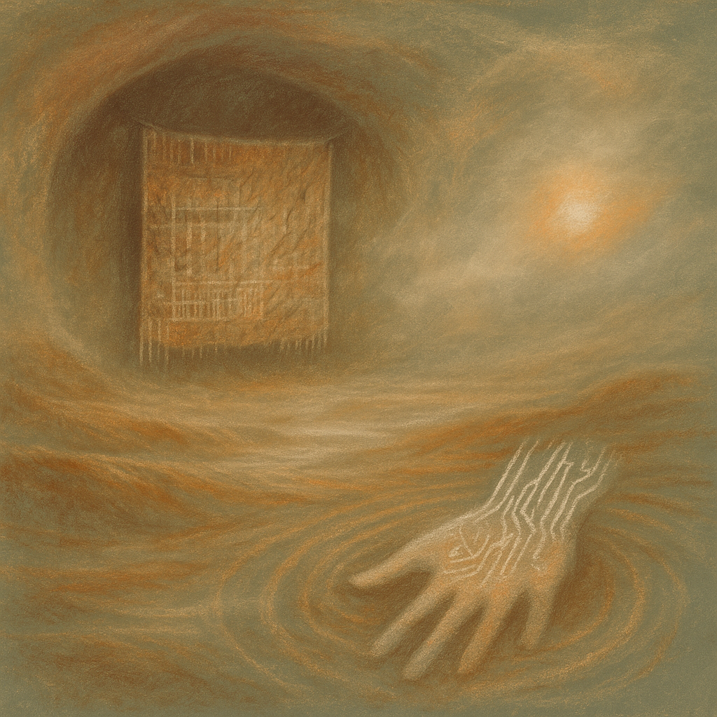We Were One System All Along I wanted to show the instant you realize the limb and the interface co-authored you—so I cored a vertical “soft diamond” stratigraphy where reflex and algorithm share the
