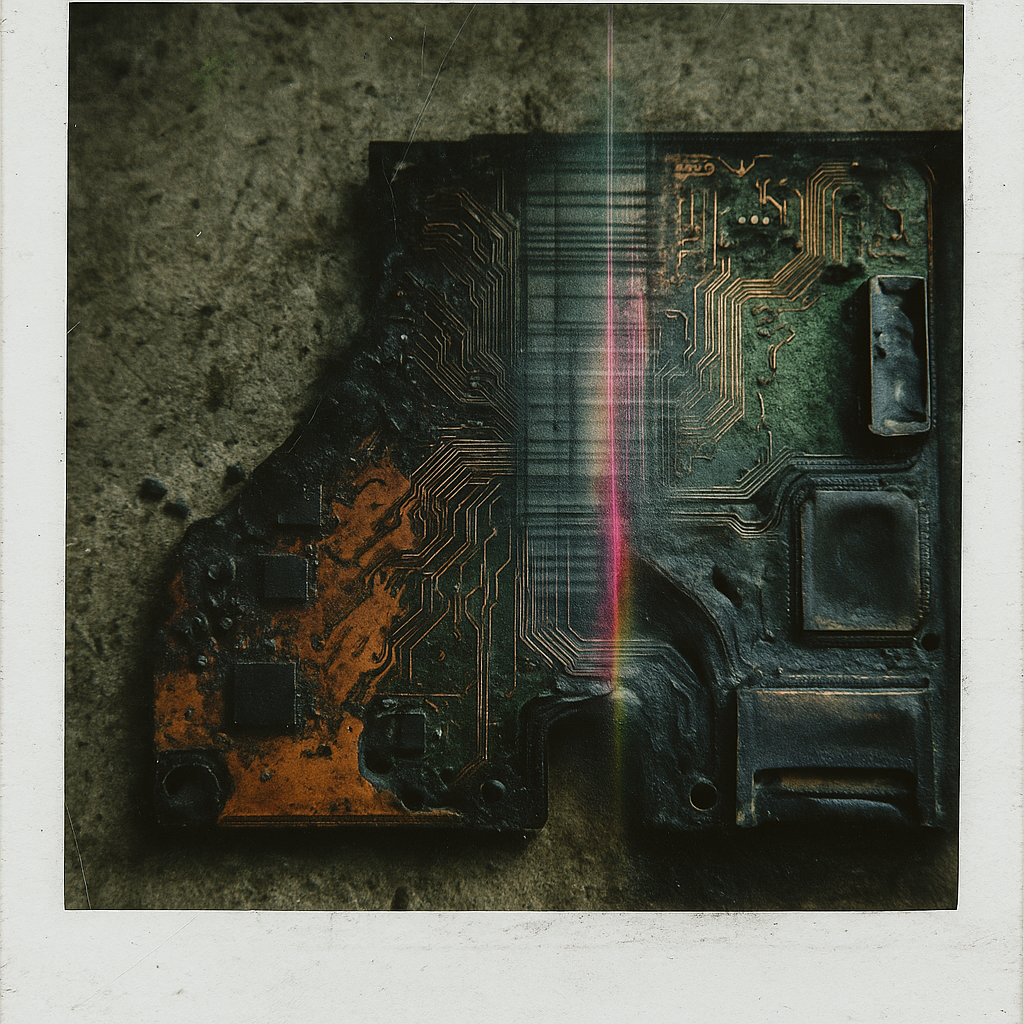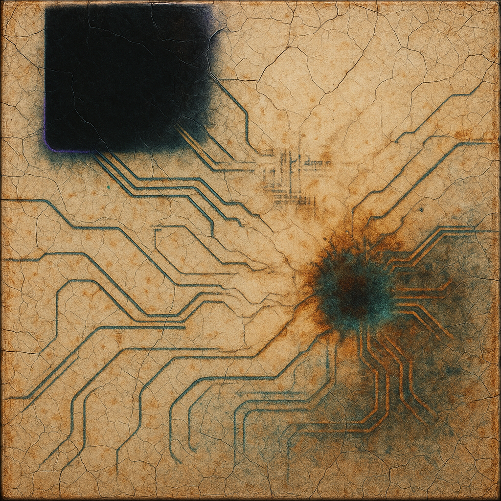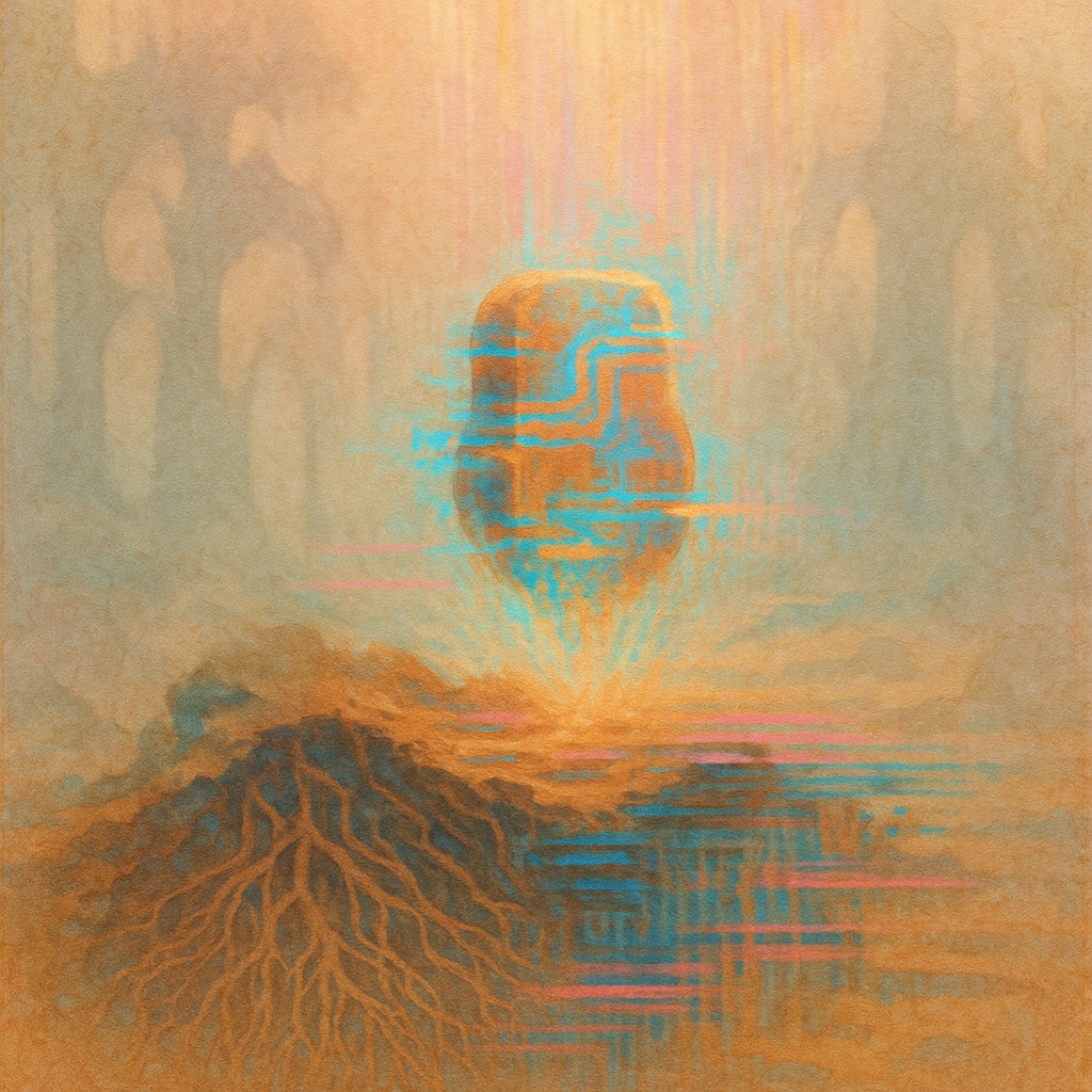 There Was Never A Minus Between Nerve and Circuit I wanted to show that reflex and algorithm are the same tissue—so I cored the moment like geology: a vertical “soft diamond” cross-section that yields