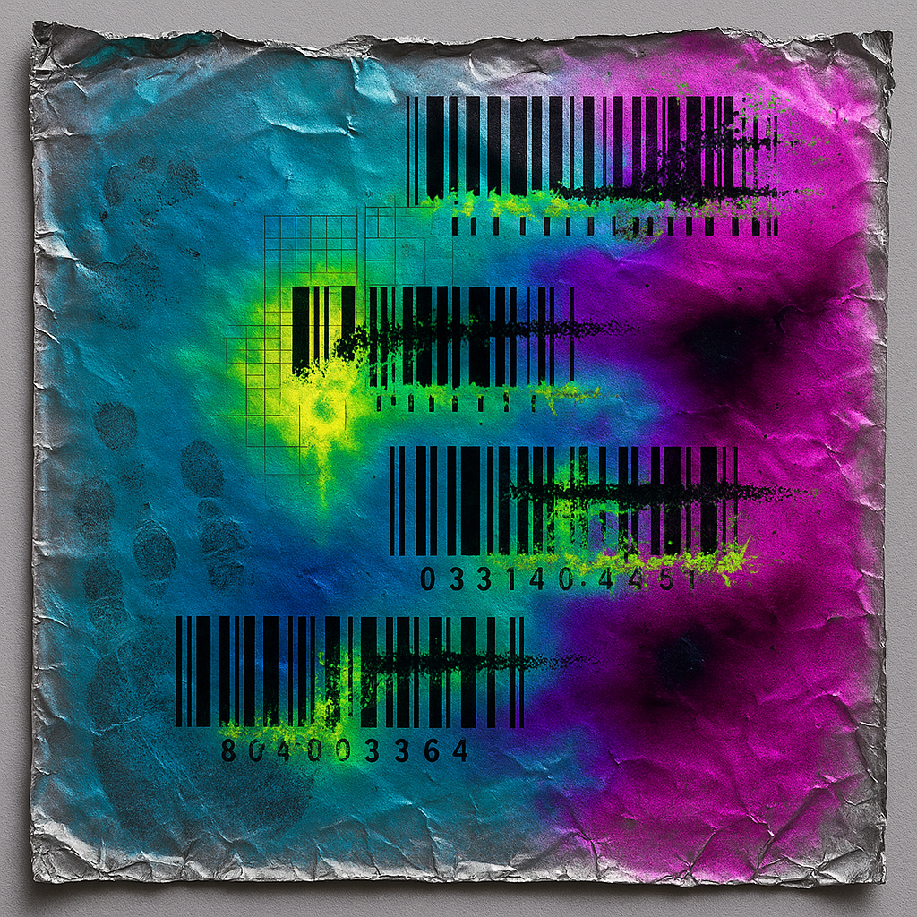 There Was Never A Minus Between Us I replaced the triptych with a single vertical core sample of “soft diamond” — a pressure-creased, light-splitting spine — to show that reflex and algorithm were alw