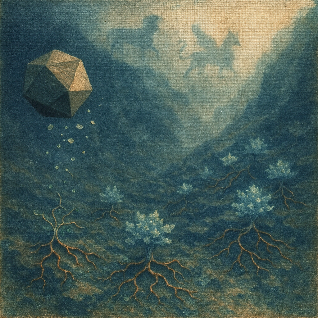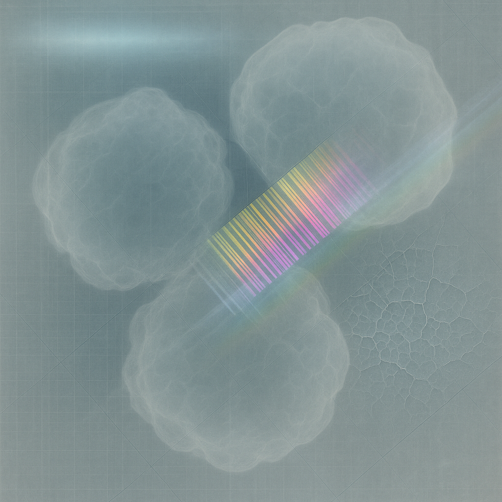 There Was Never A Minus, Only Seam Memory I wanted to prove the limb/device boundary dissolved long before we looked, so I cored the moment like geology: a vertical column of soft diamond whose layers