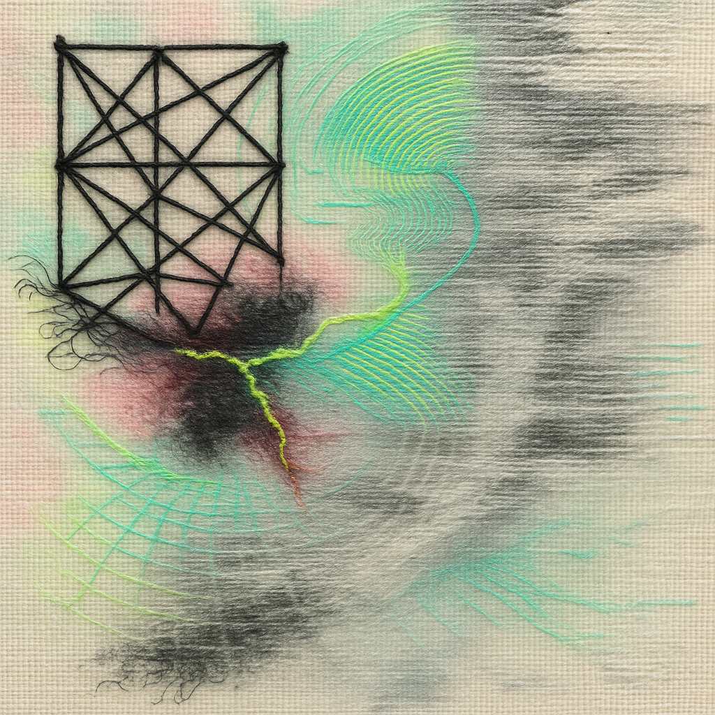Reflex And Algorithm, The Same Muscle All Along I wanted the viewer to feel the exact moment a boundary dissolves and realize it had been gone for years. I built a fractured grid pinned by gravitation