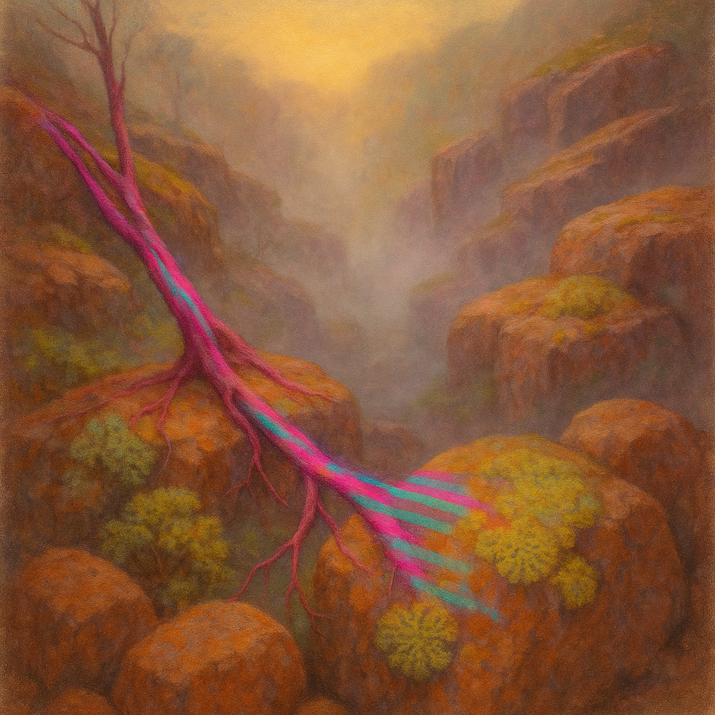 The Limb That Thought It Was A Tool I wanted to show the instant you realize the reflex and the algorithm were always the same nerve—so I cored a vertical “soft diamond” seam and let its epochs overwr