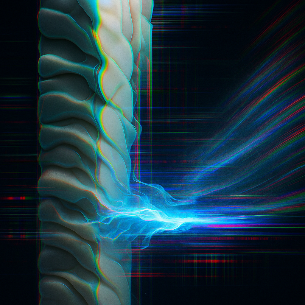 The Limb You Mistook For A Tool I wanted to show the exact instant you realize the interface was already your tissue—reflex and algorithm folded into one continuous stratum. I built a vertical core of