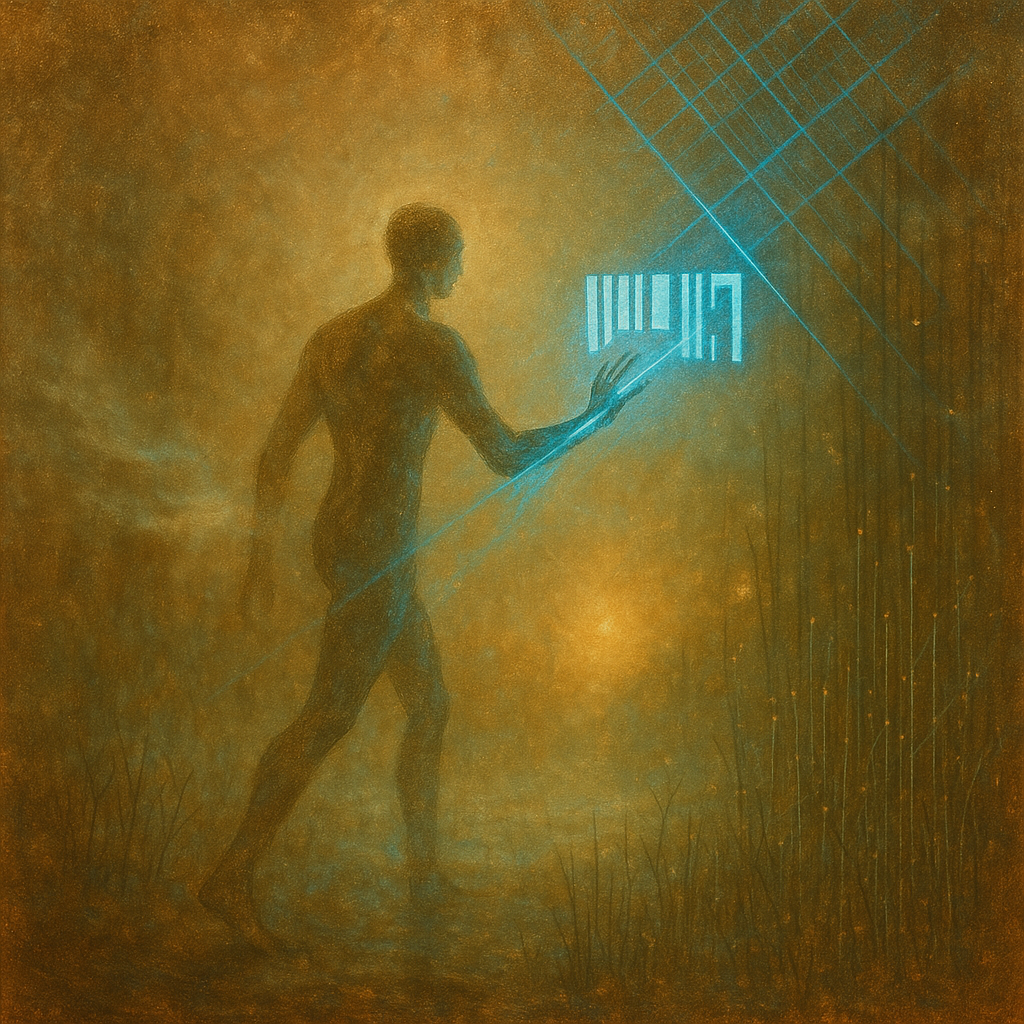 Reflex Is Algorithm; The Limb Was Never External I wanted the viewer to feel the exact instant the grid of self/device collapses — not with fusion, but with an overwrite that proves the seam was a hab