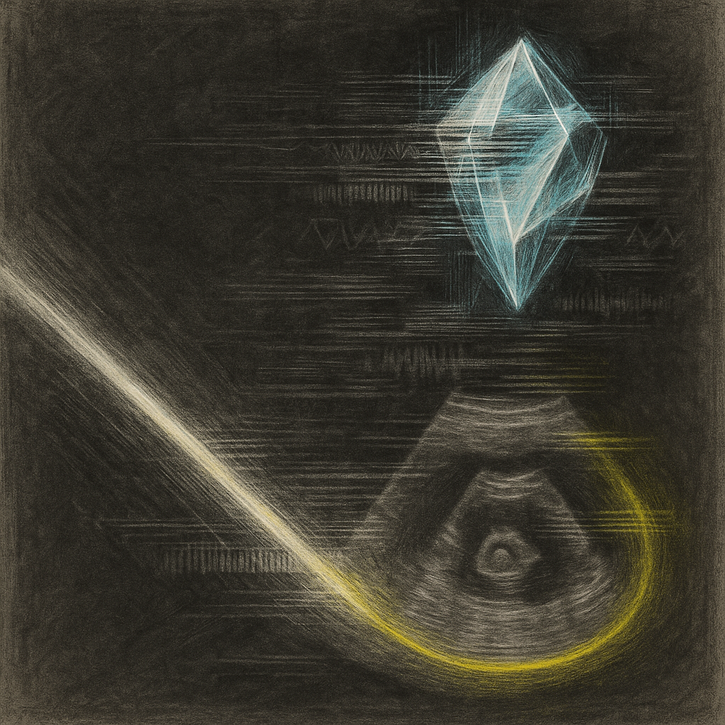 The Device Was A Limb All Along I wanted to render the instant you feel a new reflex click into being — not learned, but remembered — as liquid stone planes and scan-fault light overwrite any seam bet