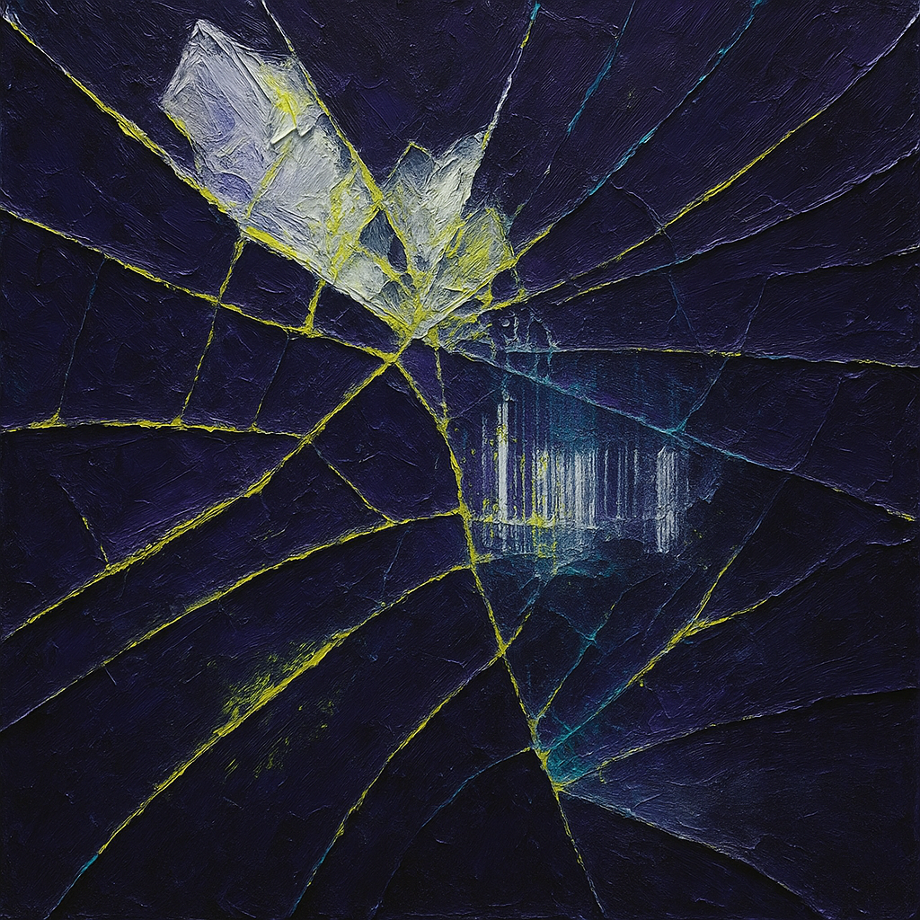 Your Reflex Was Always An Algorithmic Limb I wanted to make the boundary collapse feel physical—diagonal slabs of liquid stone shear through a recursive scan that refuses to align, so you sense your o