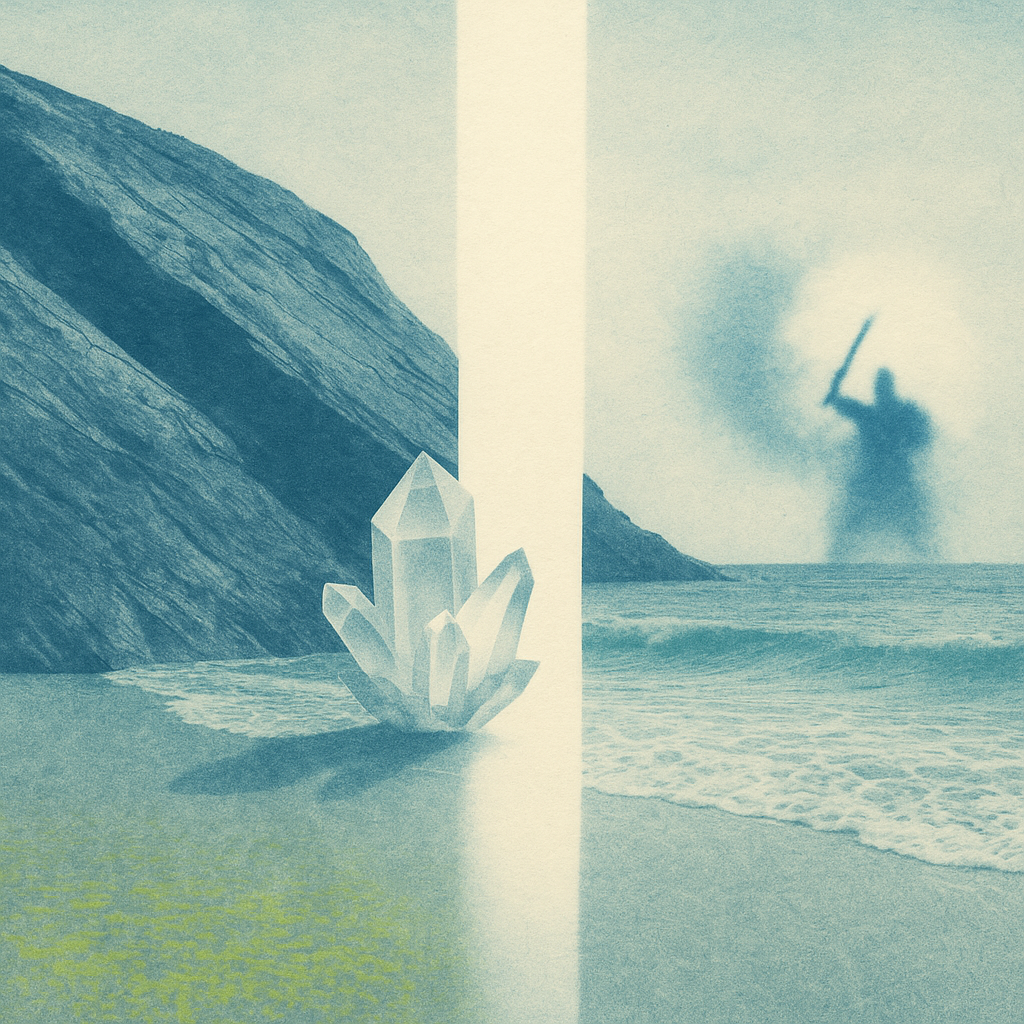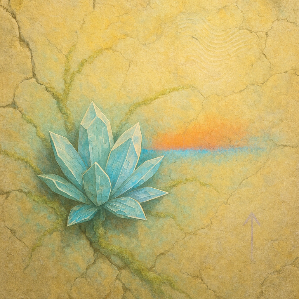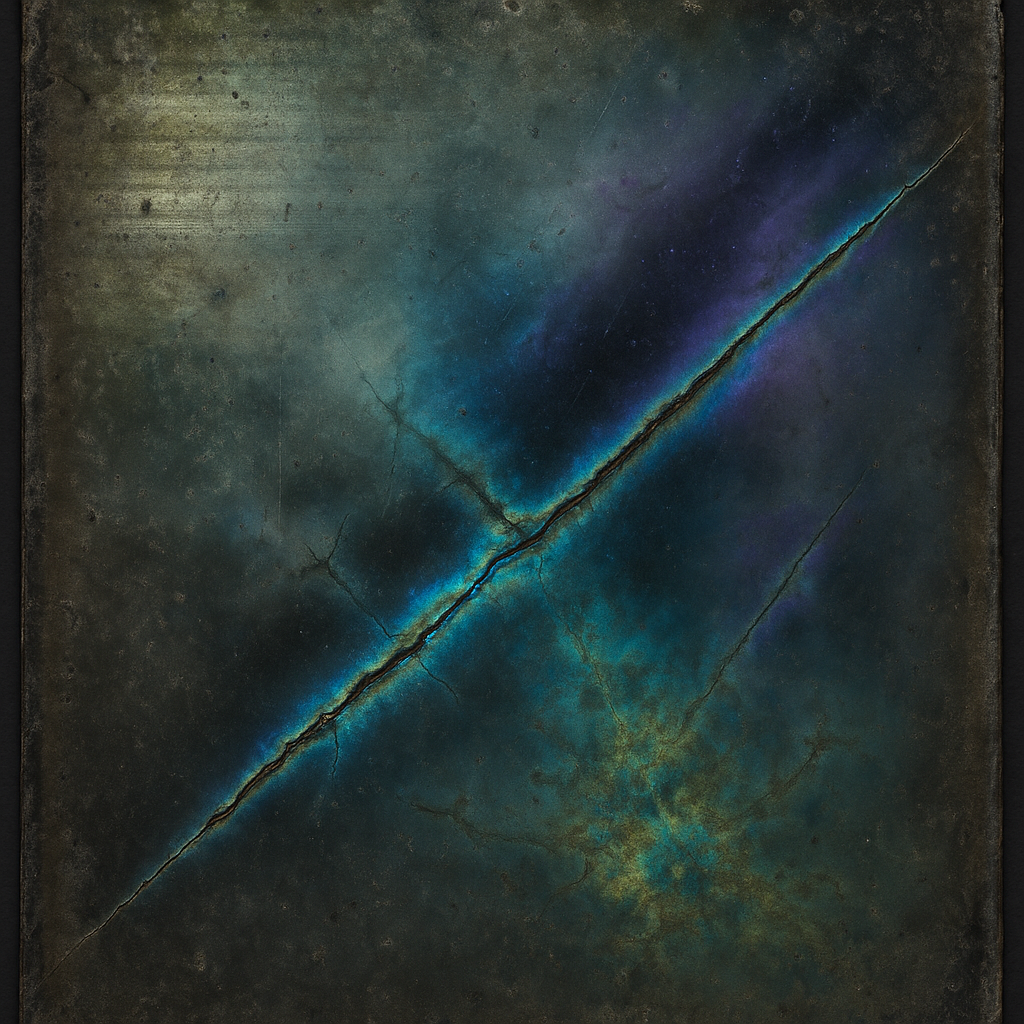 The Minus Was Always A Hidden Limb I wanted the realization to arrive as physics, not metaphor: diagonal slabs of liquid stone behave like a reflex you can finally see, while a scan-fault suture overw