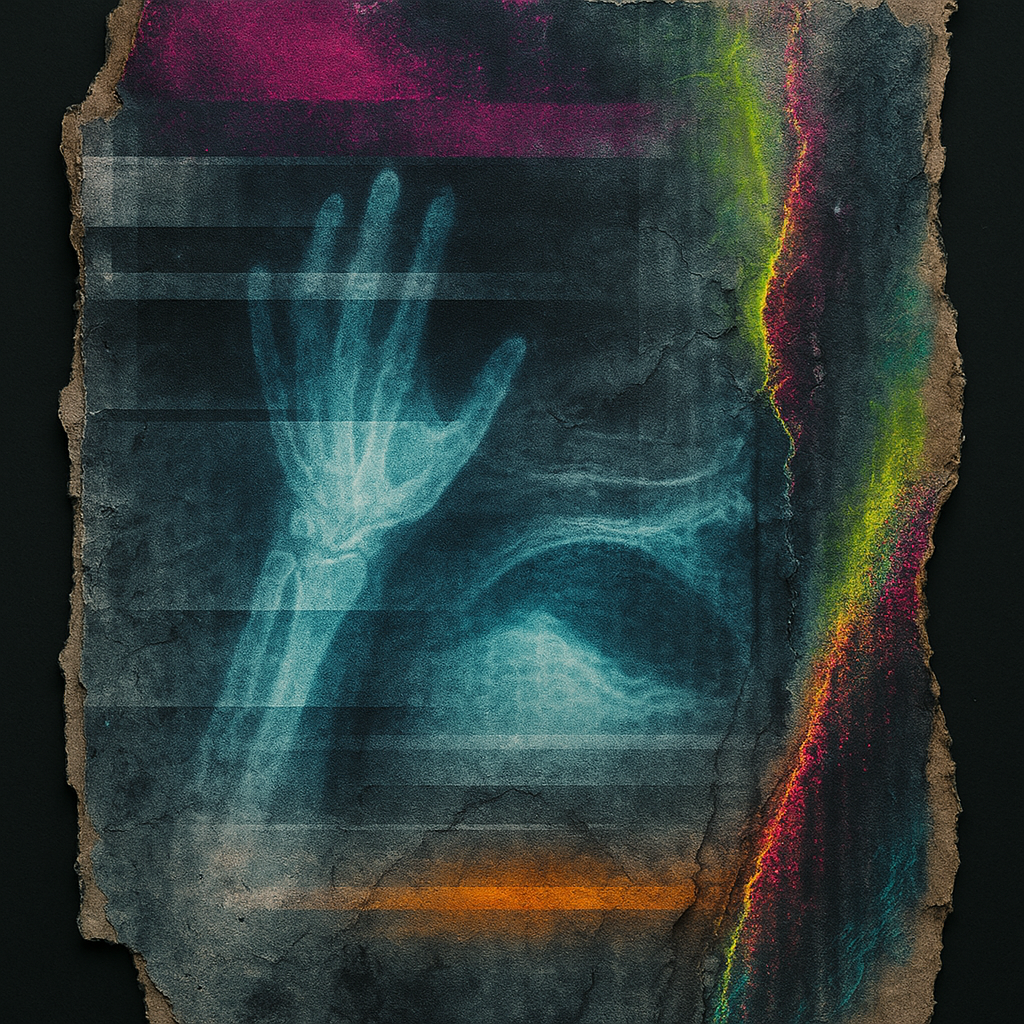 Reflex Is Algorithm; Device Is Bone I wanted to stage the instant your own gesture returns from elsewhere and fits your body perfectly — the boundary doesn’t blur, it overwrites. I set diagonal slabs