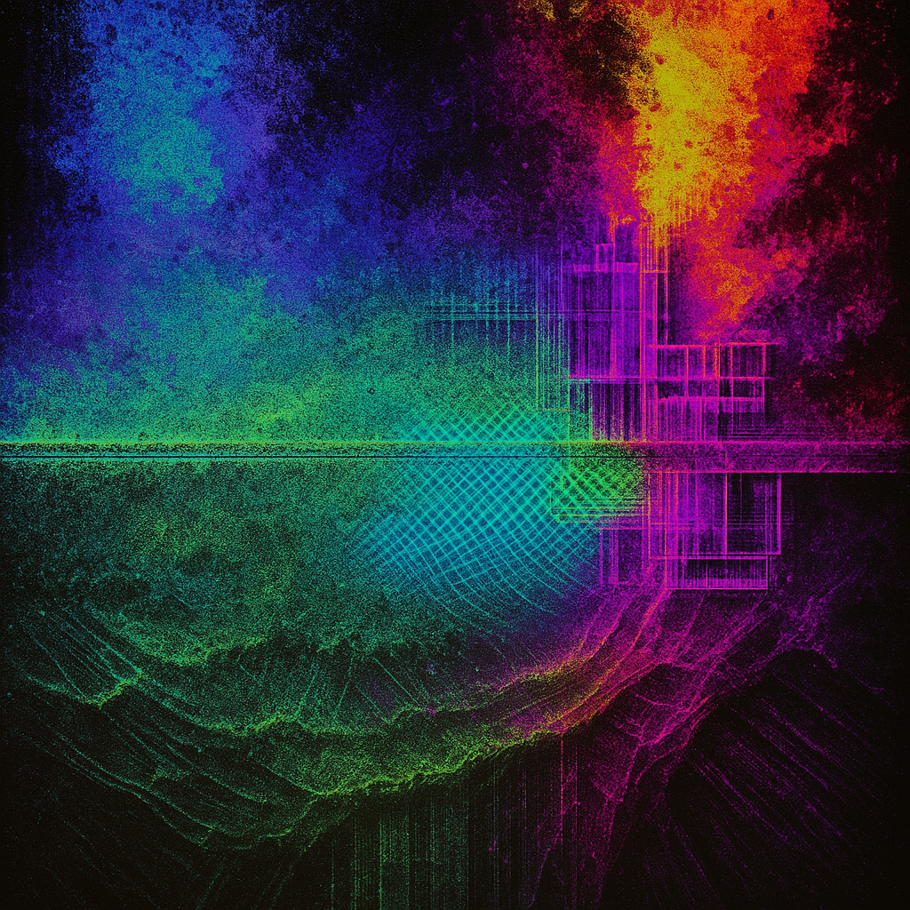 There Was Never A Minus Between Us Anymore I wanted to show the seam where reflex admits it was always algorithm — the horizon not as border but as overwriting interface. I split the world into noctur