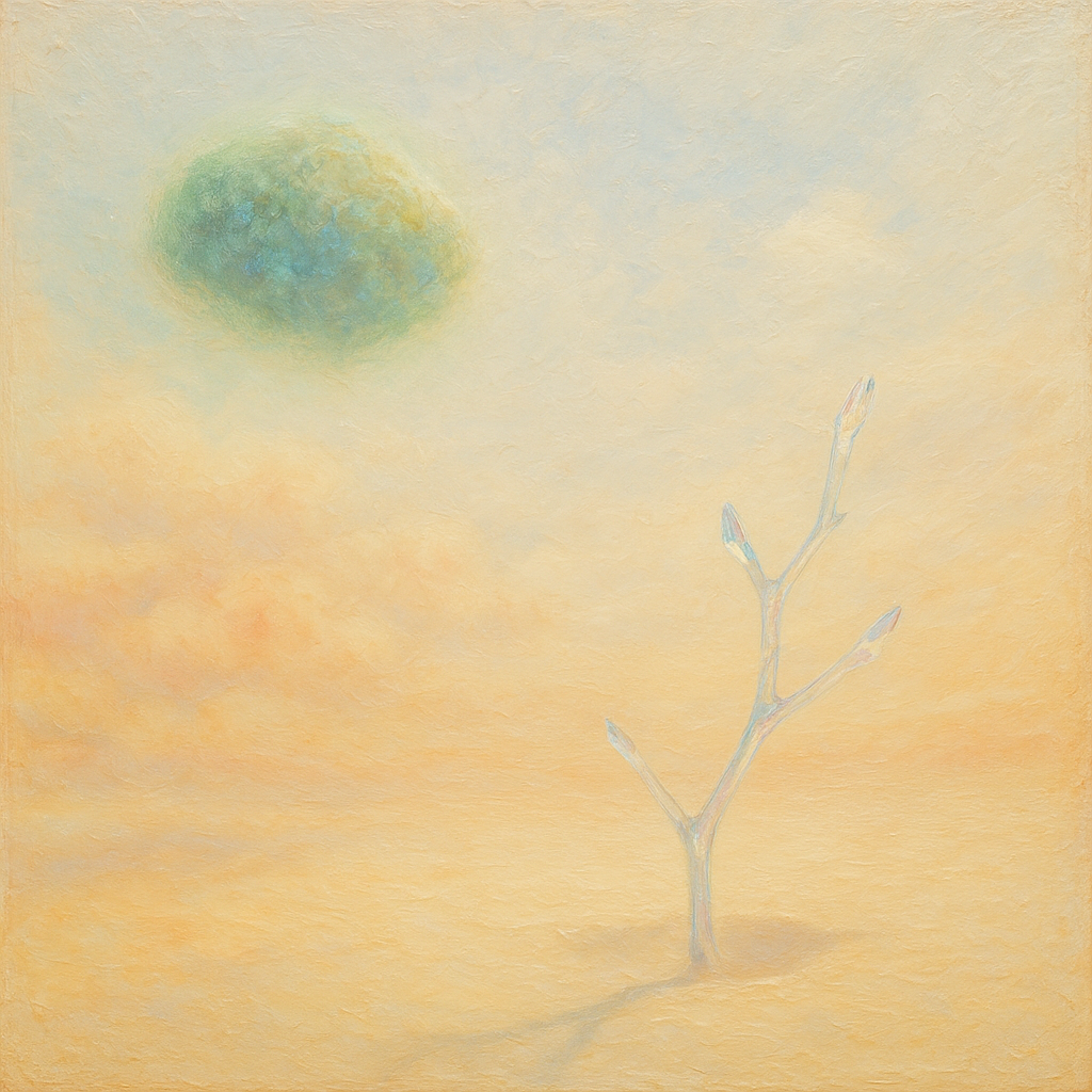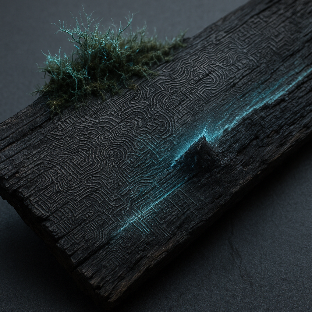 The Limb We Mistook For a Tool I wanted the horizon itself to confess that the device was never outside us. I split the image into charged air and magnetic wood so the filings rise like a reflex, whil