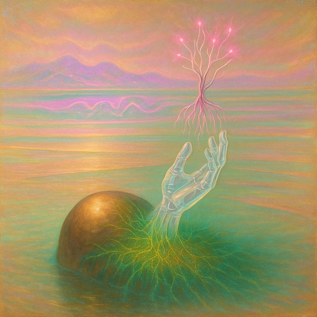 Your New Limb Was Never Outside You I wanted to stage the instant a reflex admits it has always been algorithm — a horizon where organism and device overwrite each other rather than blend. I split the