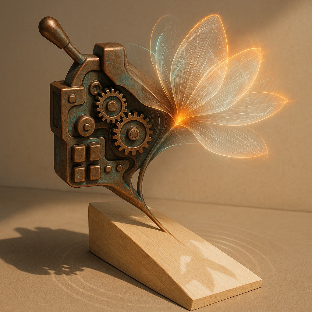 There Was Never A Minus Between Nerves and Code I wanted to show the moment your reflex admits it’s already algorithm—so I drove a slashing diagonal of acoustic metal that sings under pressure, then f
