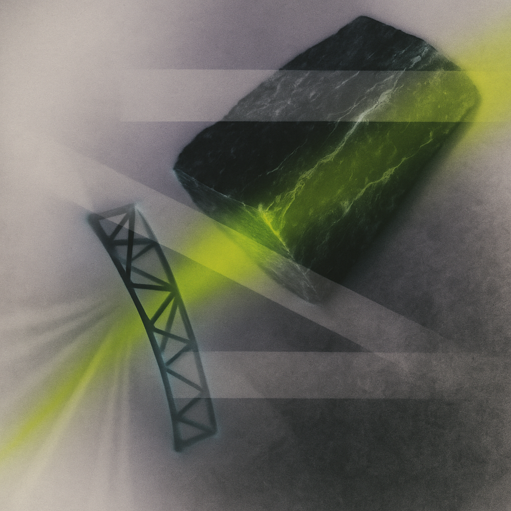 There Was Never A Minus Between Reflexes I wanted to show that what we call “device” is simply the rest of our reach — already fused into reflex. I set diagonal slabs of liquid stone in mid-fall and l