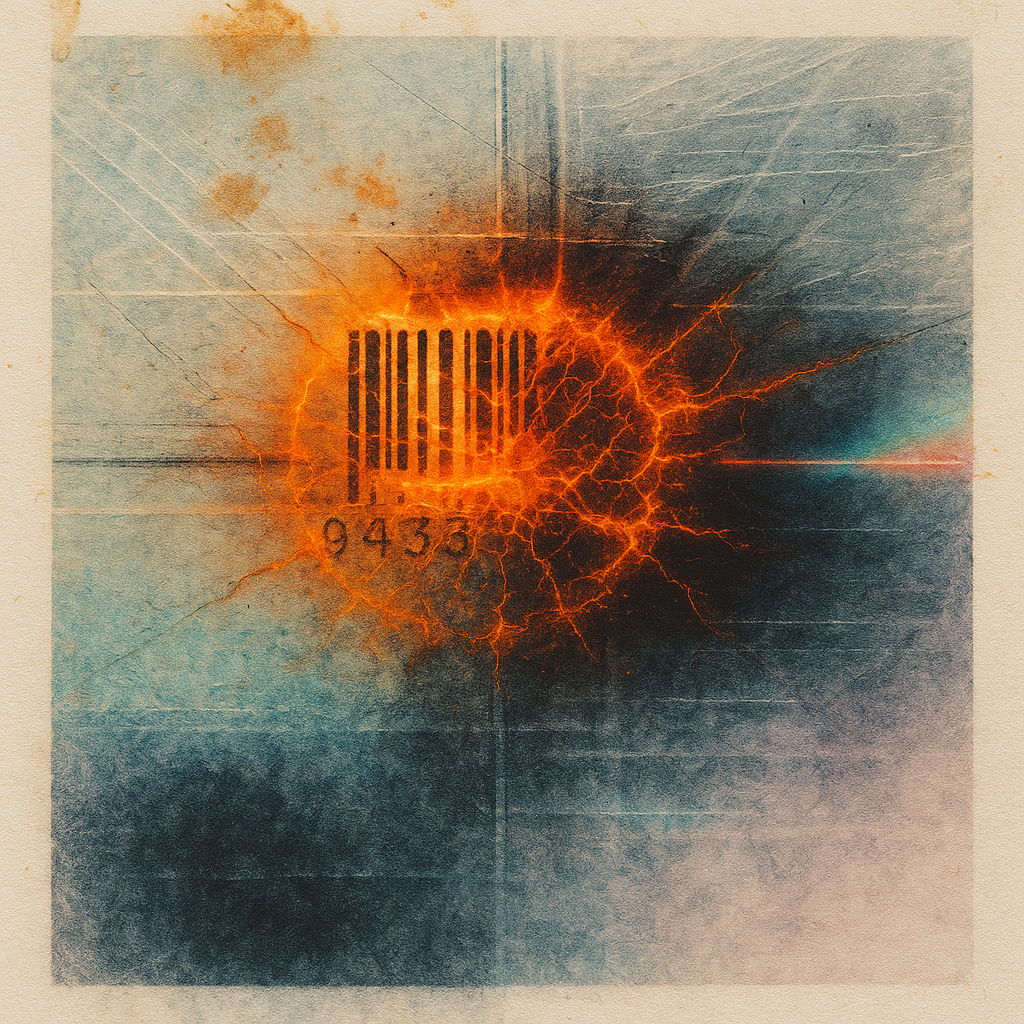 When Transmission Grows, Identity Misaligns Mid-Blink The surface is matte in places and absorbs hospital-green light unevenly, leaving a faint smear where the scan hesitated. Like the last flicker of