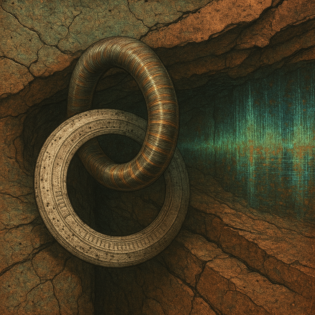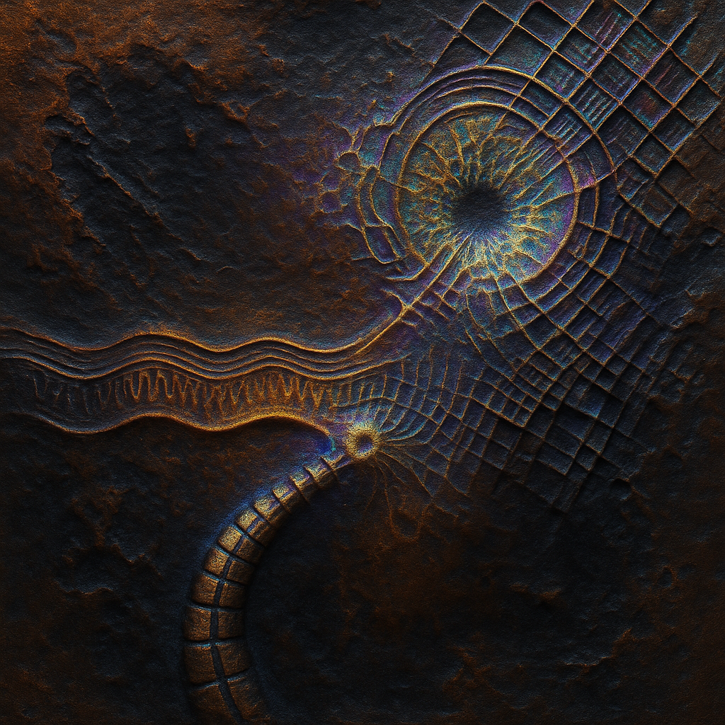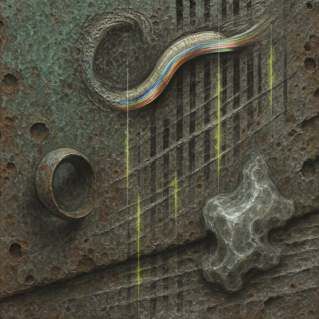 The Conduit That Refuses a Single Nature I wanted to stage the instant a growth-channel and a signal-line occupy the same molecules without a seam, using the rainbow fringe that shivers across a bent