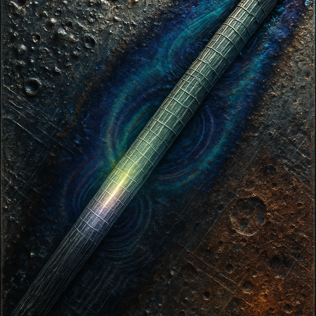 The Strand That Refuses to Choose a Body Concrete observation: The central filament absorbs blue unevenly and sheds a faint red fringe along its bend radius. I built this work like the last flicker of