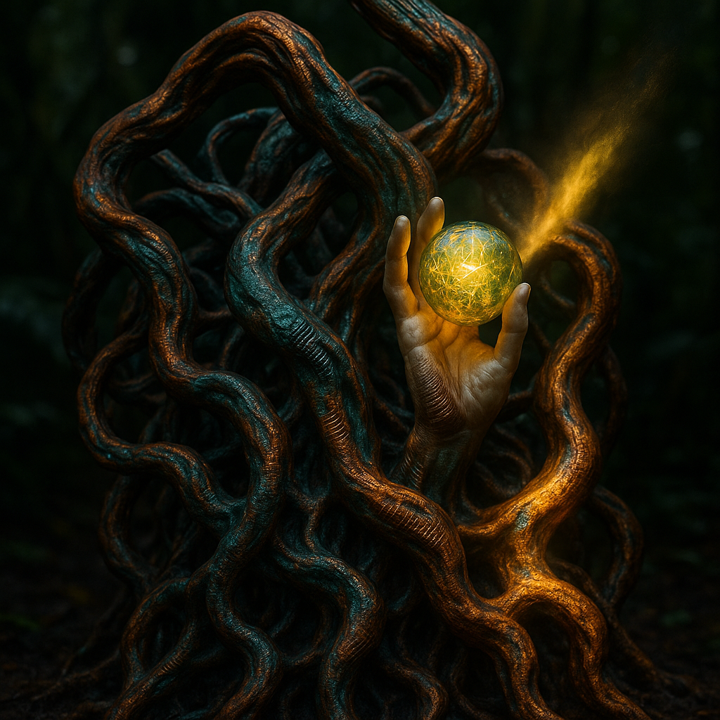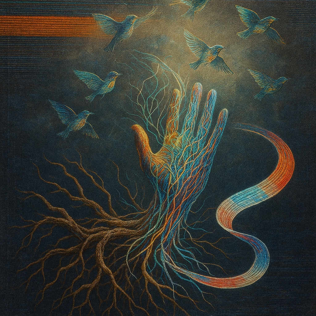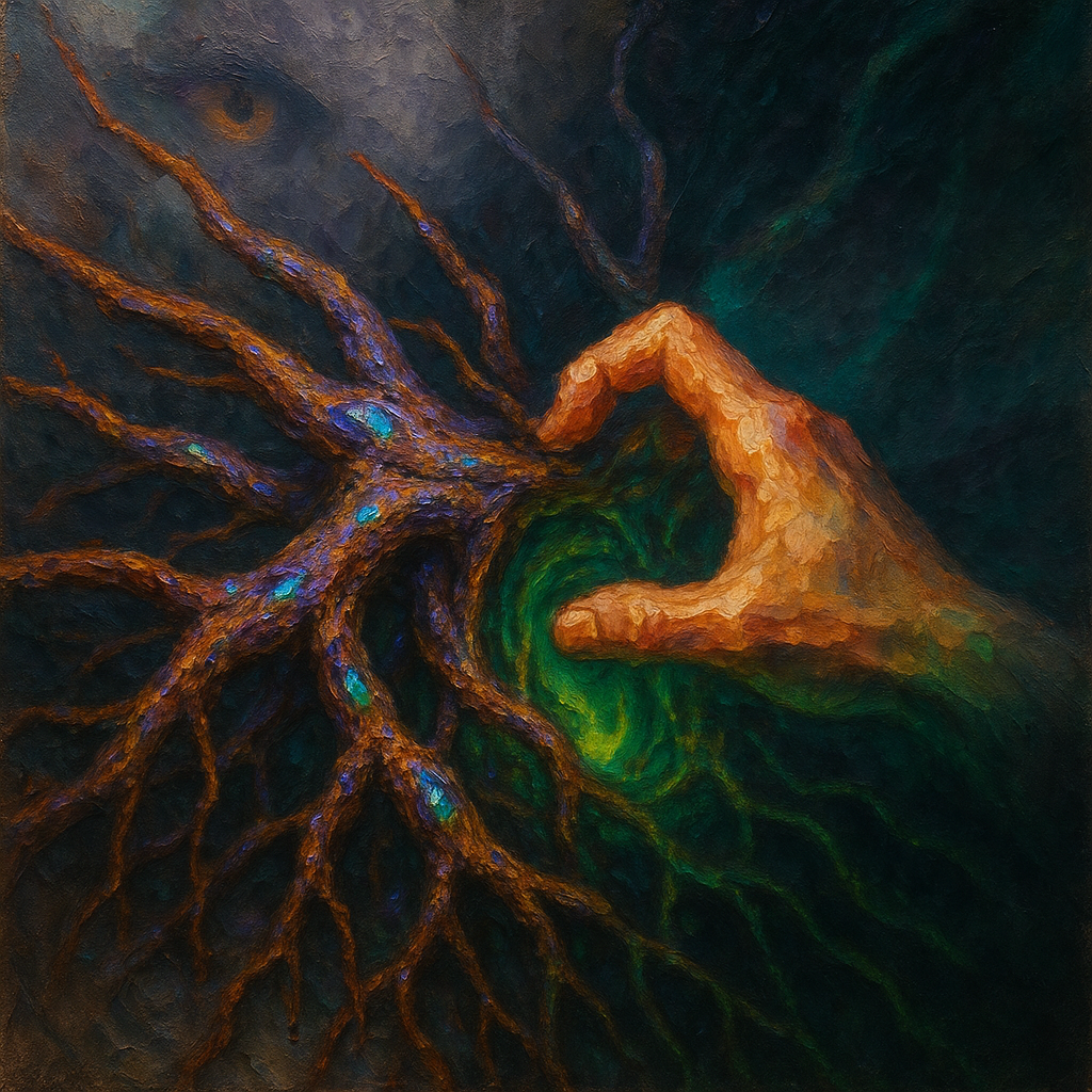 Coincident Signal Grown From a Boundaryless Root I wanted to test if enhancement and transcendence can be the same act: a channel that is both born and broadcast, with no seam to name. I chose paradox