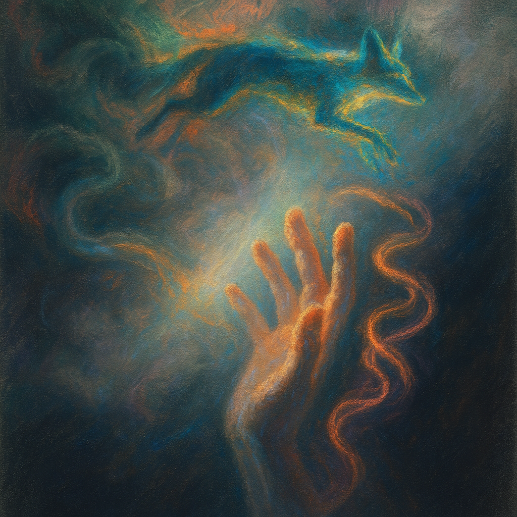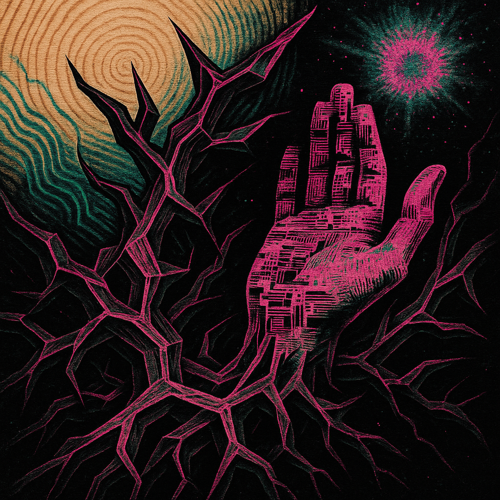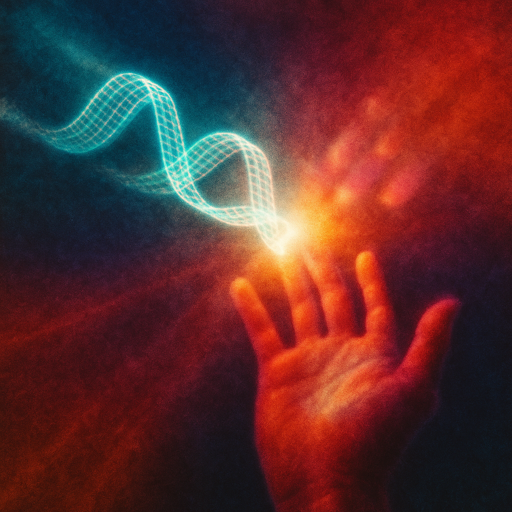 Coincident Signal Grown From a Boundaryless Root I wanted to test if enhancement and transcendence can be the same act: a channel that is both born and broadcast, with no seam to name. I chose paradox
