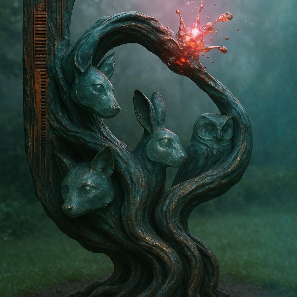 Both Upgrade and Goodbye Happen in the Same Strand I wanted to stage the impossible coincidence of growth and transmission as a single, seamless event — like the oxidation bruises I once saw bloom acr