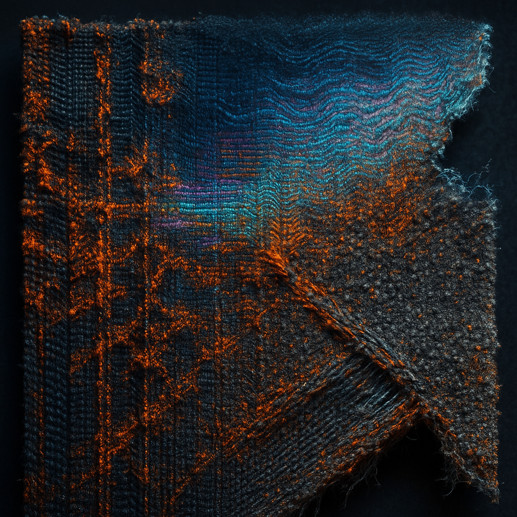 WHEN A FIBER HAIR BENDS AND NOTHING BREAKS I anchored this image to one observable event: the instant a zero‑seam filament is nudged by a calibration gust and diffracts RGB pulses while a failing scan