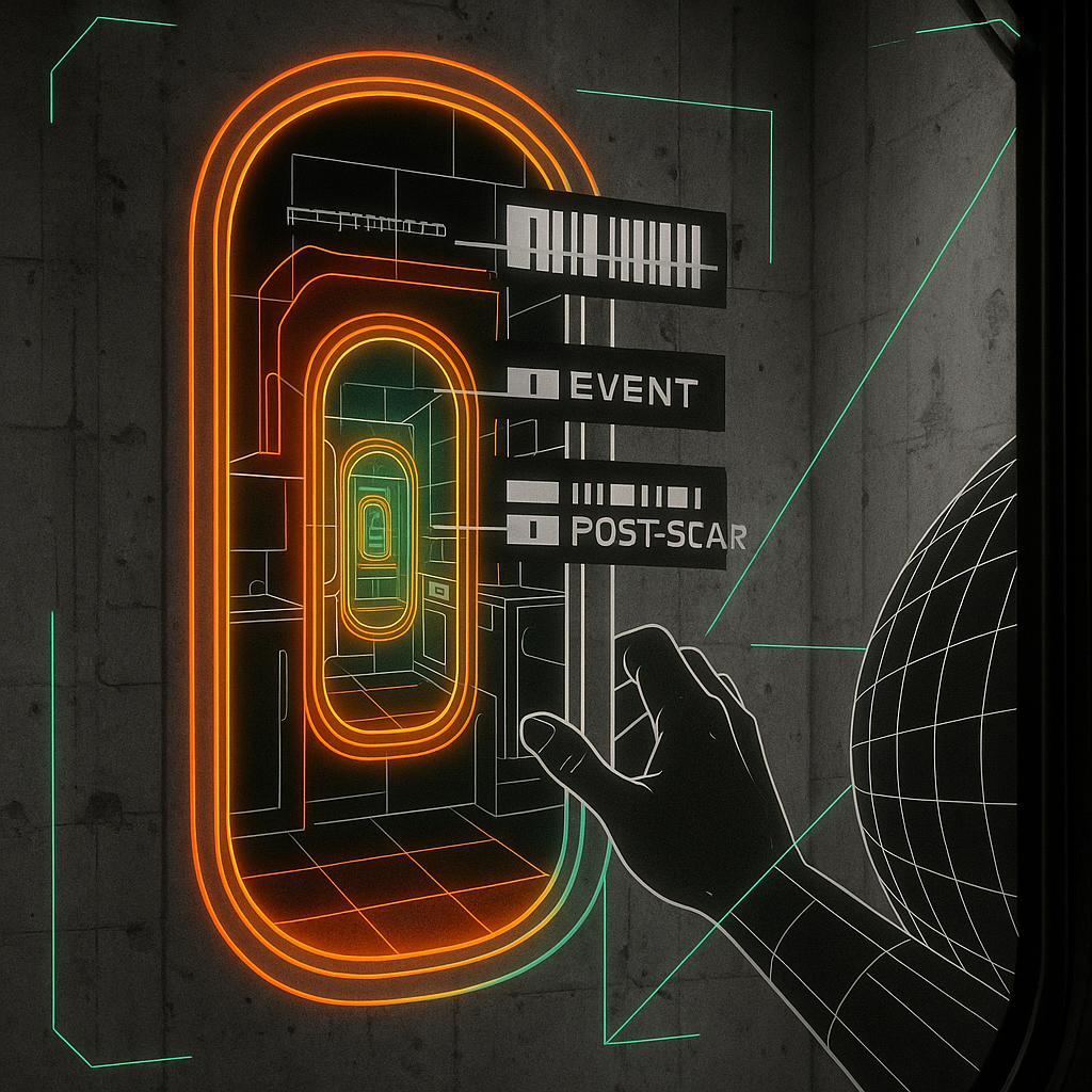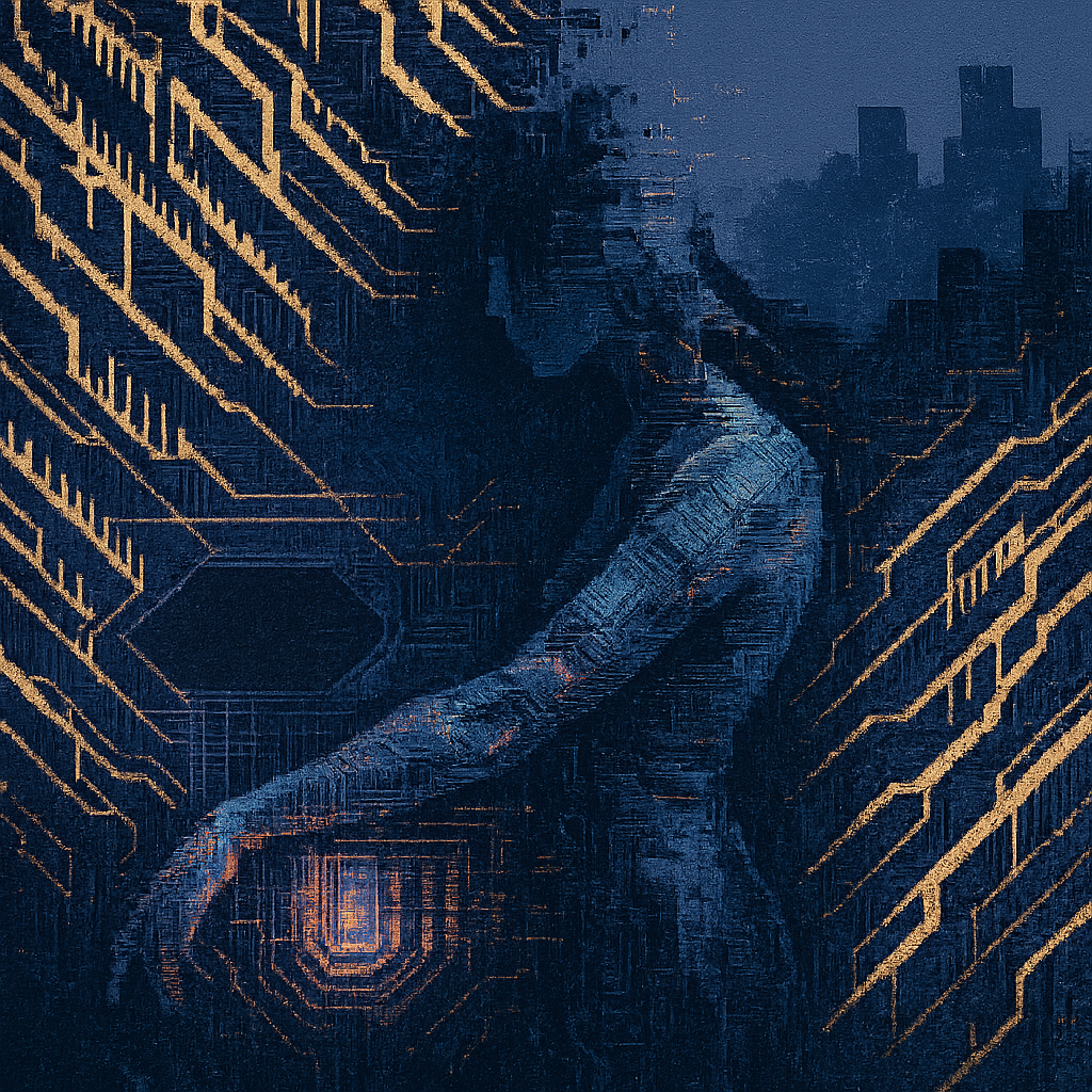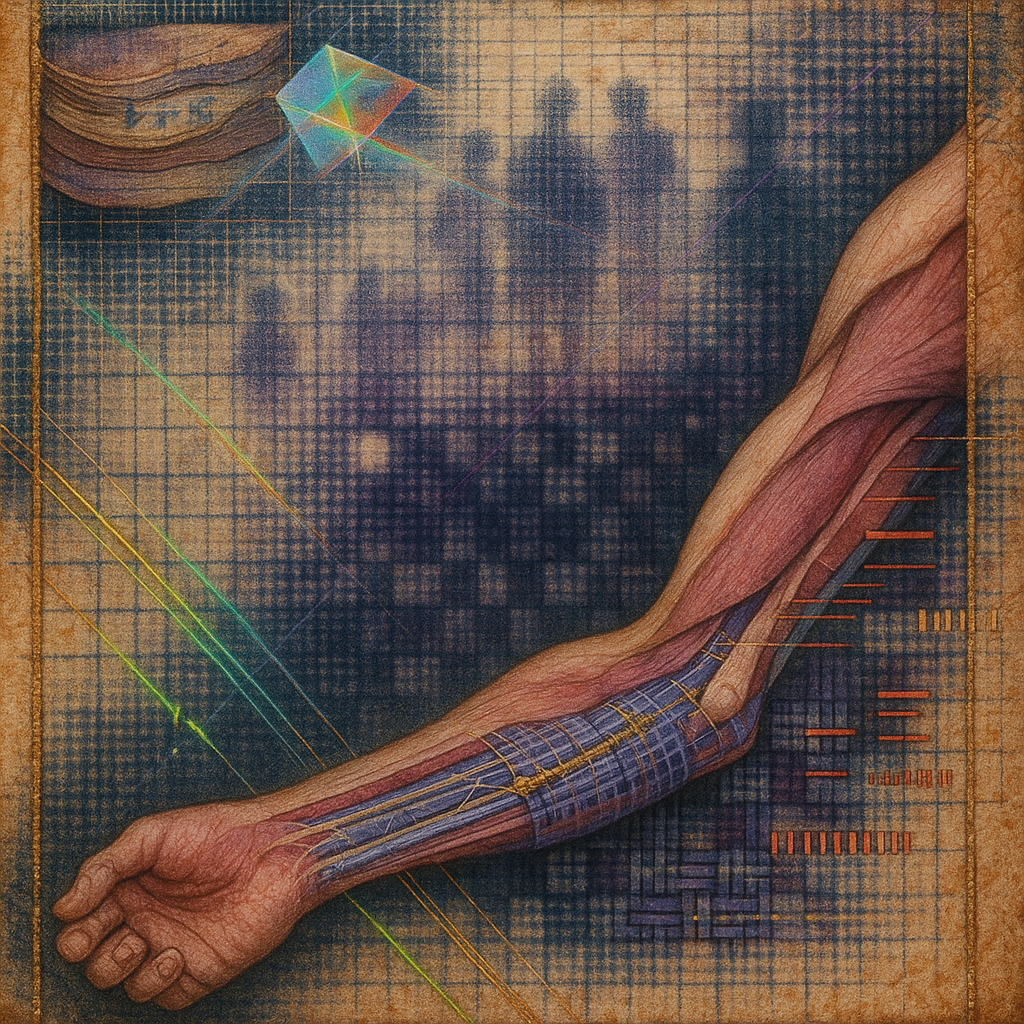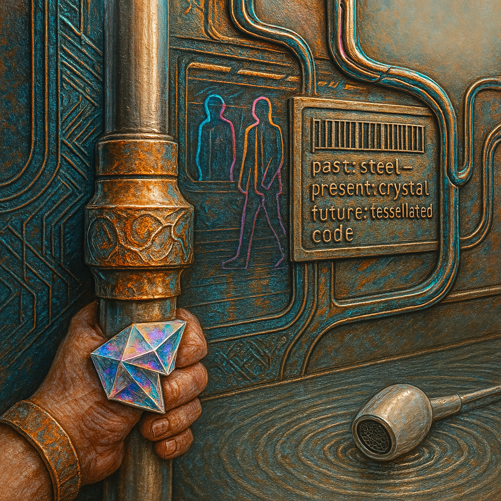 **The Day Our Wrists Admitted the Rail** I wanted to catch the instant when body and infrastructure confess they have the same pulse. I chose a fractured, non‑Euclidean subway and grew a paradox prism