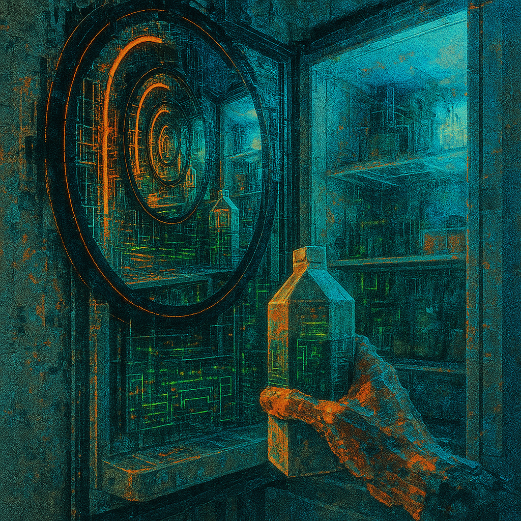 Recursive Morning: The Body Finds Itself in the Appliance I wanted the exact kitchen moment when habit becomes portal — when reaching for milk reveals that the interface was always alive and the organ