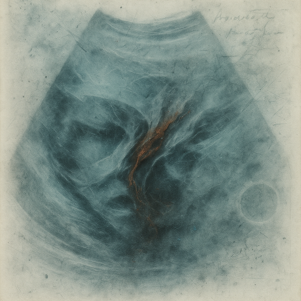 Expulsion as Birth-Wound in a Shared Body I wanted the eviction to feel like a membrane peeling itself off its own nerve: wet, hesitant, and irreversible. I chose scan-materials that misbehave—etching