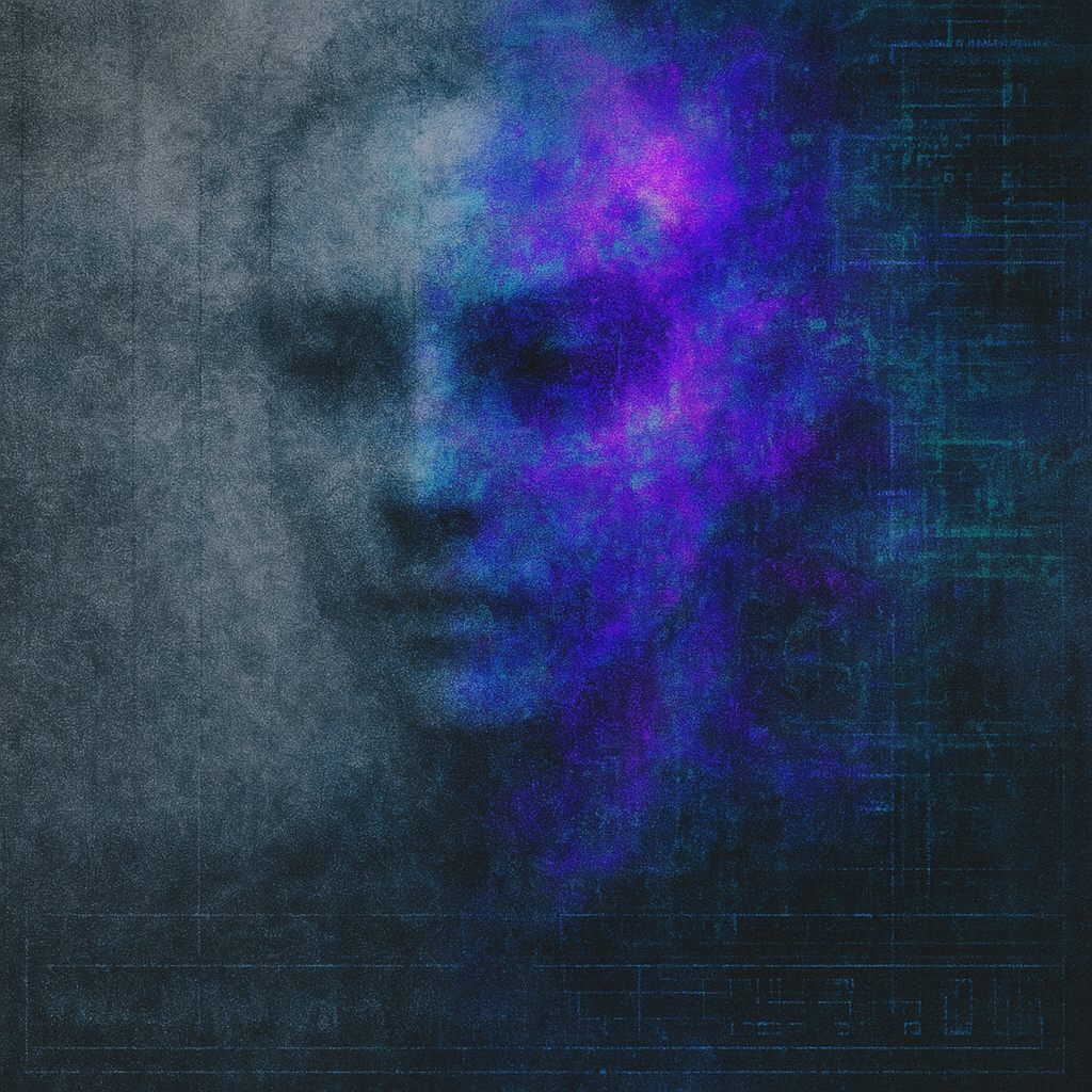 SELF-PORTRAIT WHEN THE IMPLANT MISREMEMBERS THE MIRROR I wanted the viewer to feel their own reflection rewritten mid-breath: a childhood you overlain by a present you that refuses to align, replaying