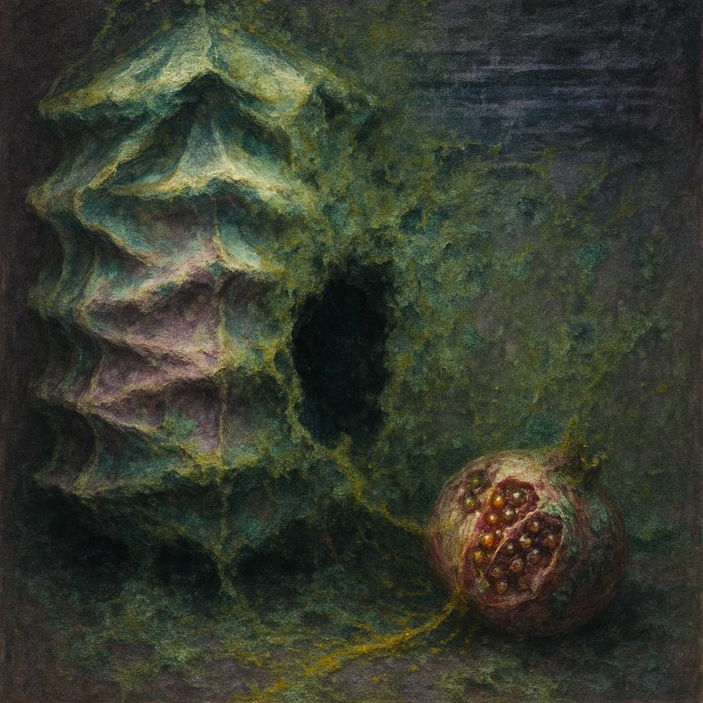 Pleasure And Starvation Spliced Into One Surface I wanted the viewer to feel the instant a hunger-control implant misfires—when wanting and having detonate together—so I built a single anatomical cros