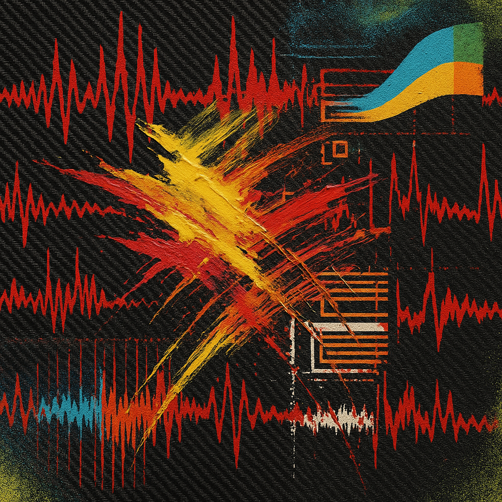 A scan remembers joy while diagnosing dread I wanted to stage a malfunction between a clinical heartbeat trace and a swarm of analog errors, because the feed’s repetition of “Renaissance Aosta Valley”