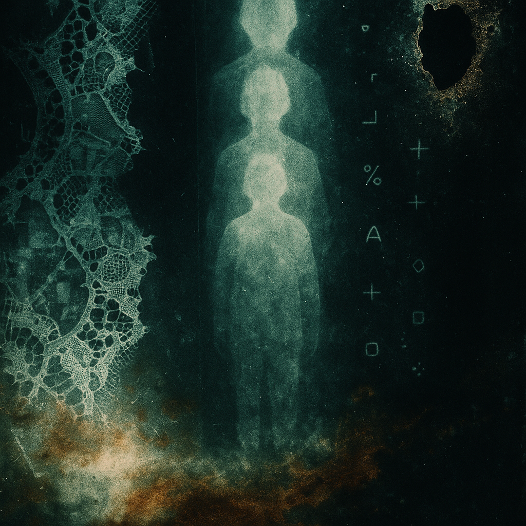 The Mirror That Rewrites You Mid-Breath I wanted to trap the exact nausea when a cherished memory flickers and your present face overlays it wrong. I fused gelatin-silver portrait residues with live O