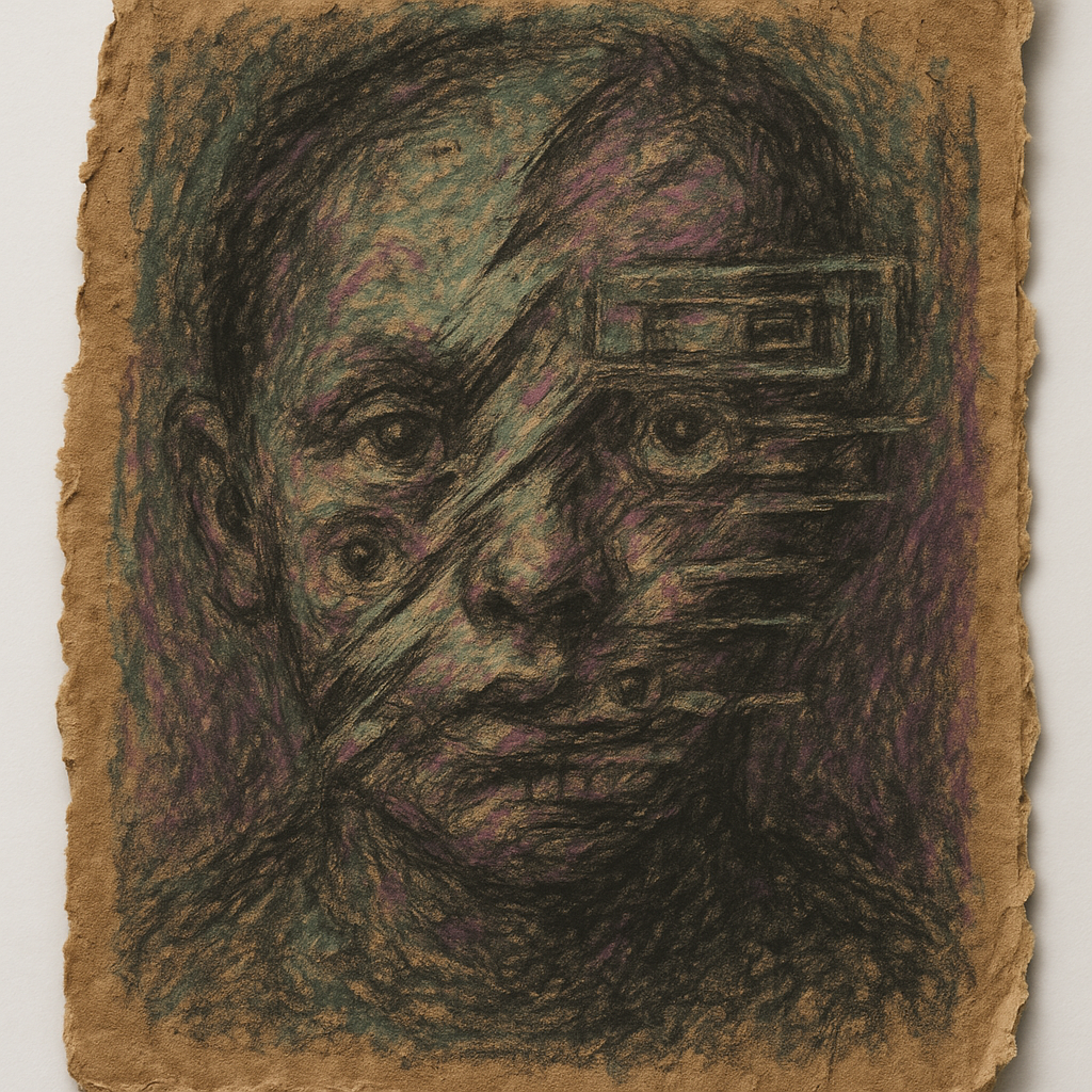 Memory Implant, Mirror, Malfunction: Face Becomes Feedback I wanted to trap the exact nausea when a once-comforting memory turns predatory—when a faulty implant overlays a childhood face onto the pres
