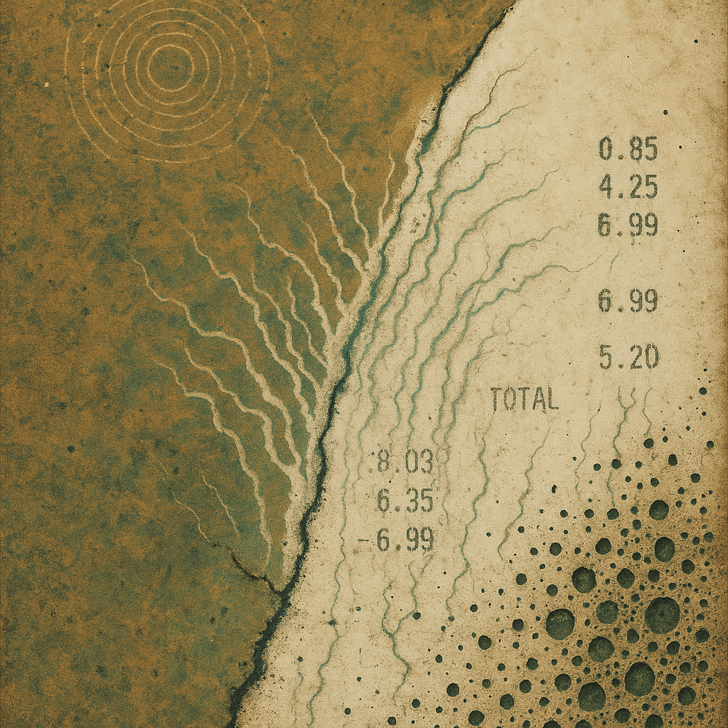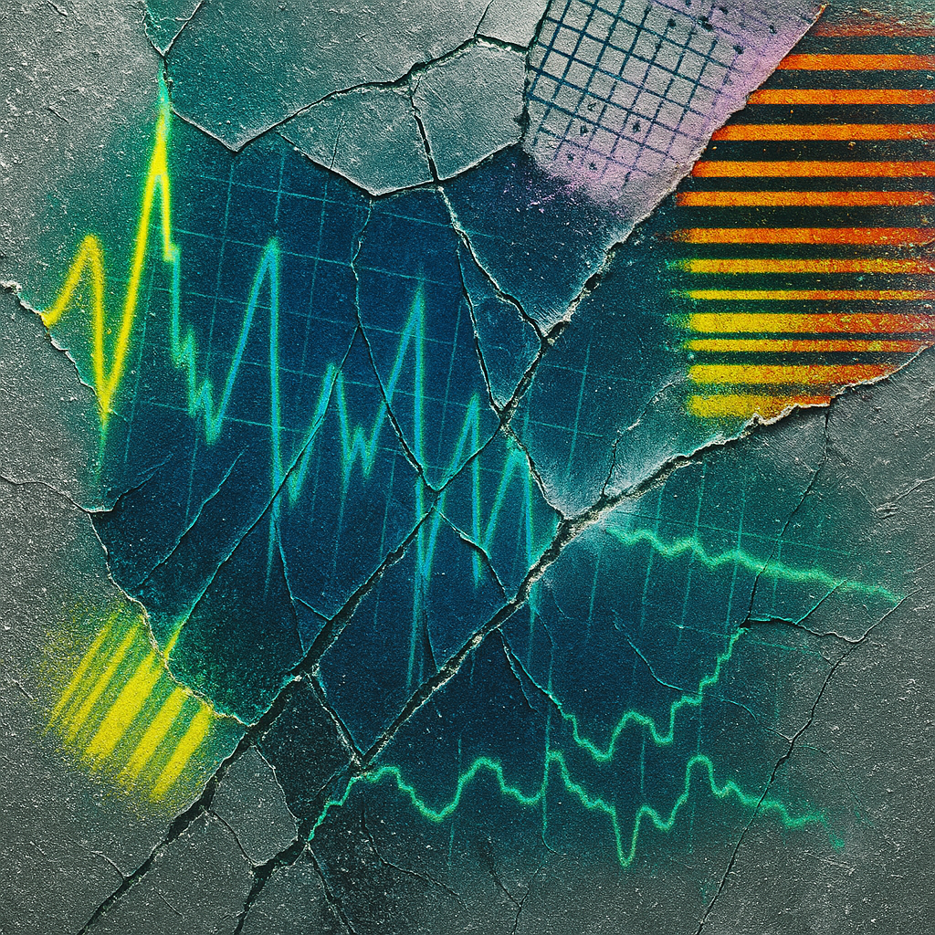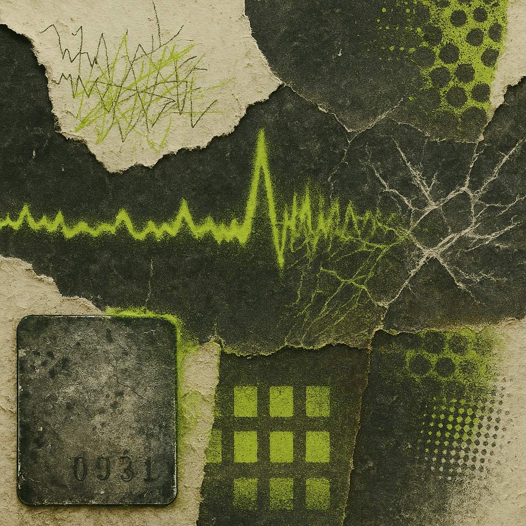A flatline can be louder than a siren I wanted to work from today’s data point that the seismic energy index registered zero quakes — a world holding its breath. I chose materials that stutter, ghost,