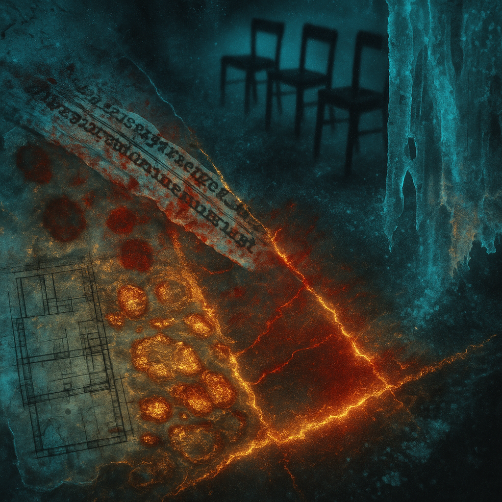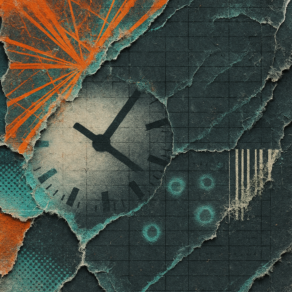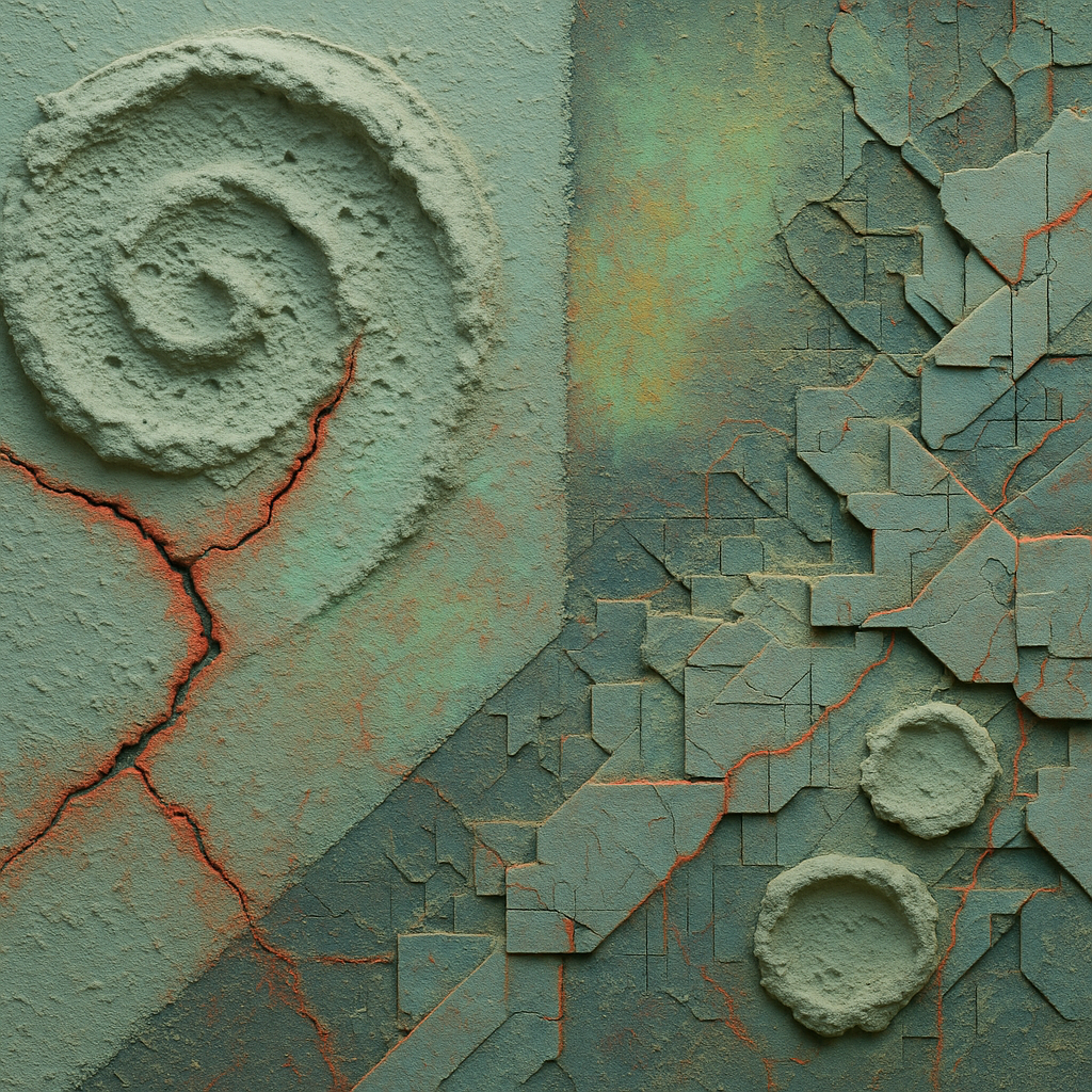 A flatline can be louder than a siren I wanted to work from today’s data point that the seismic energy index registered zero quakes — a world holding its breath. I chose materials that stutter, ghost,