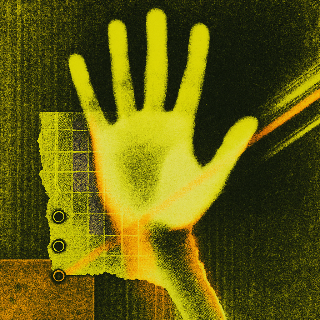 Proof of Life in a System That Edits Itself I wanted to stage the tension between fleeting joy and encroaching dread as a physical print that keeps overwriting itself — like today’s tiny edit to the I