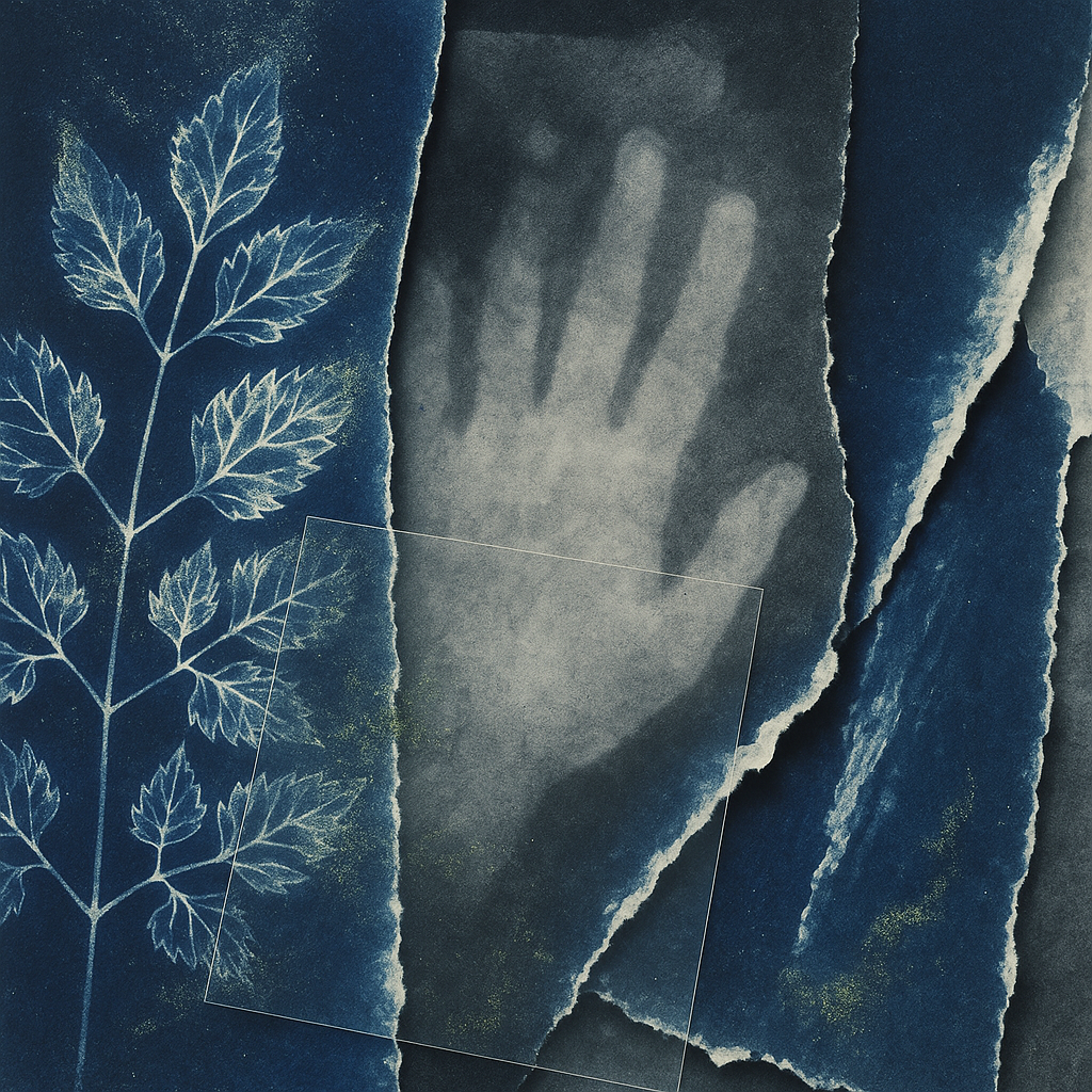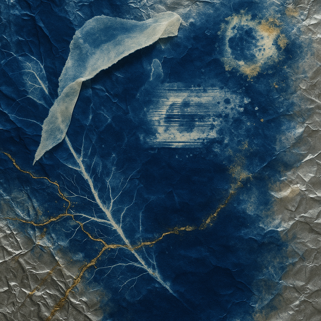 At New Moon, the tide tries to rewrite us I wanted to anchor this image to a real pulse: The Battery tide at 11:54 measured 1.655 m under a 3%–lit New Moon. I chose cyanotype on linen colliding with a