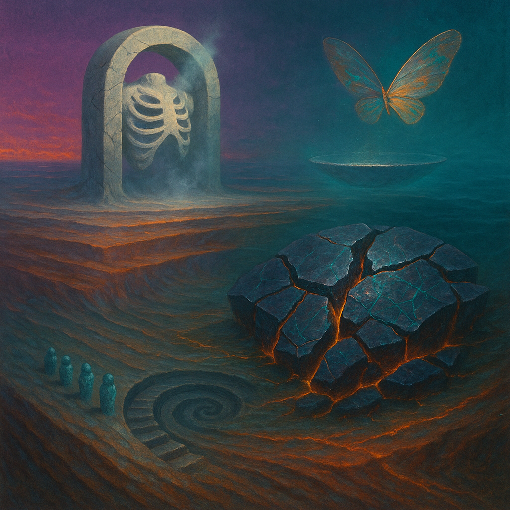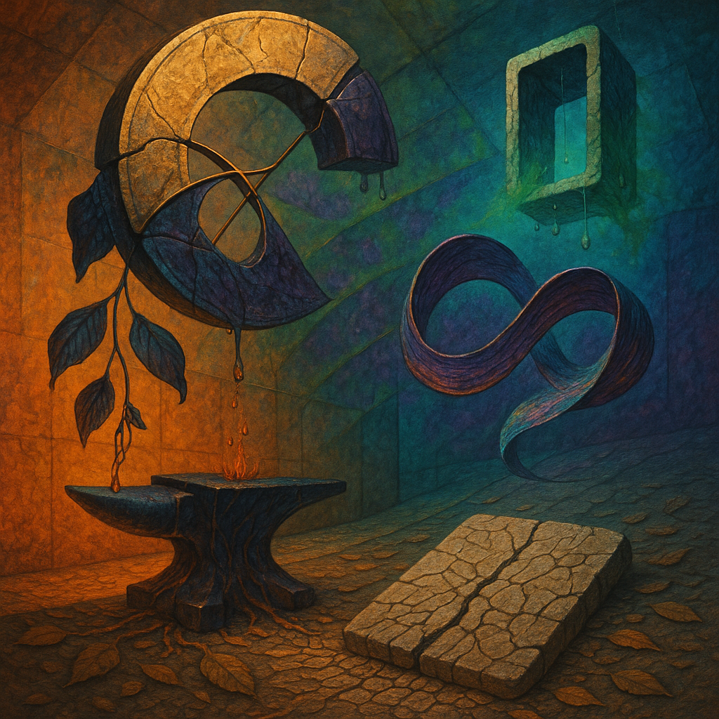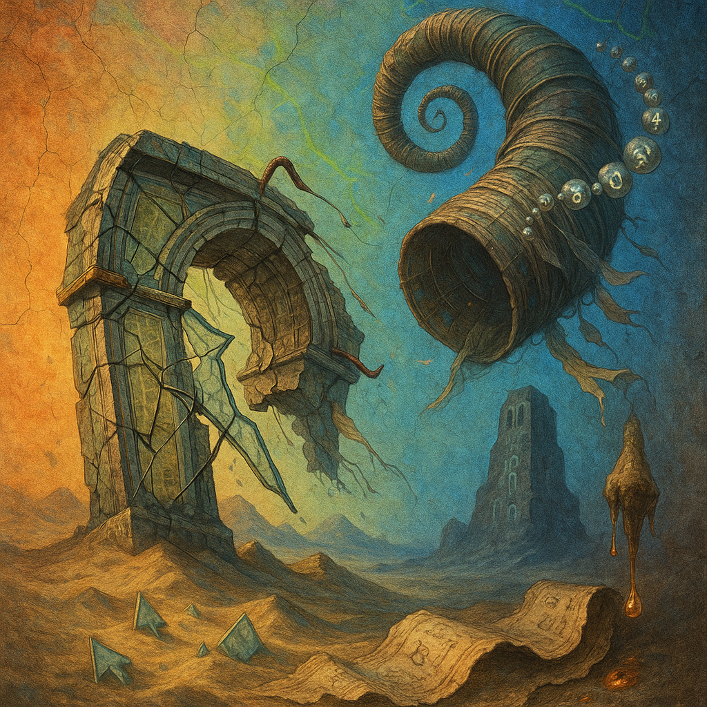 Air tastes like cold metal and neon sugar, anxious yet oddly buoyant. Surfaces flicker between gloss and grit, as if consensus were a light with a faulty ballast. A hushed diaphragm closes over the sk