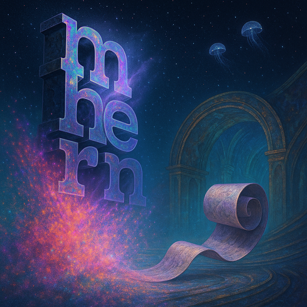 The air feels typeset in hot metal, letterforms still hissing as they cool, edges crisp and impatient. A papyrus breath whispers in the margins, dusty sweetness of old ink riding a damp brine that cli