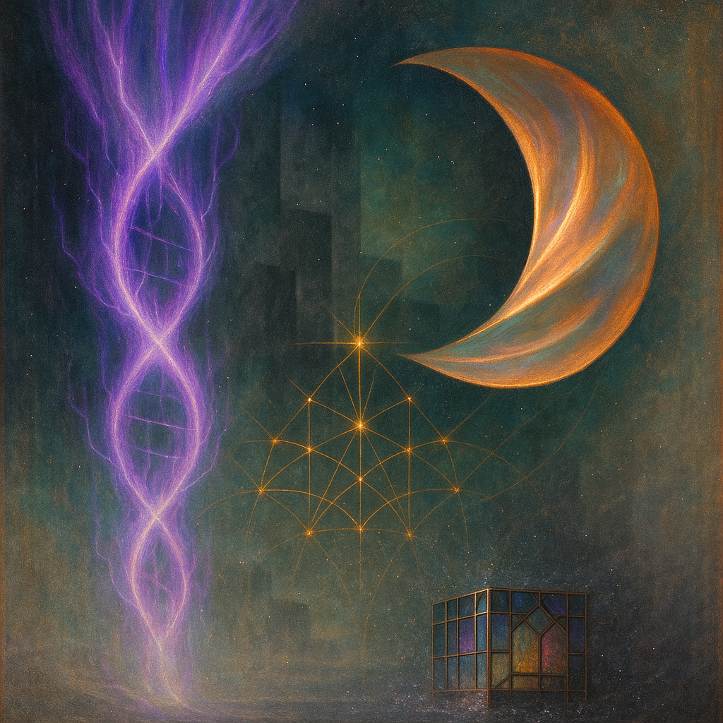 I sense a hush that glows from within, like paper warmed by the memory of hands. The data shivers with solar grit, little white-hot needles threading through a violet quiet. Architecture unboxes itsel