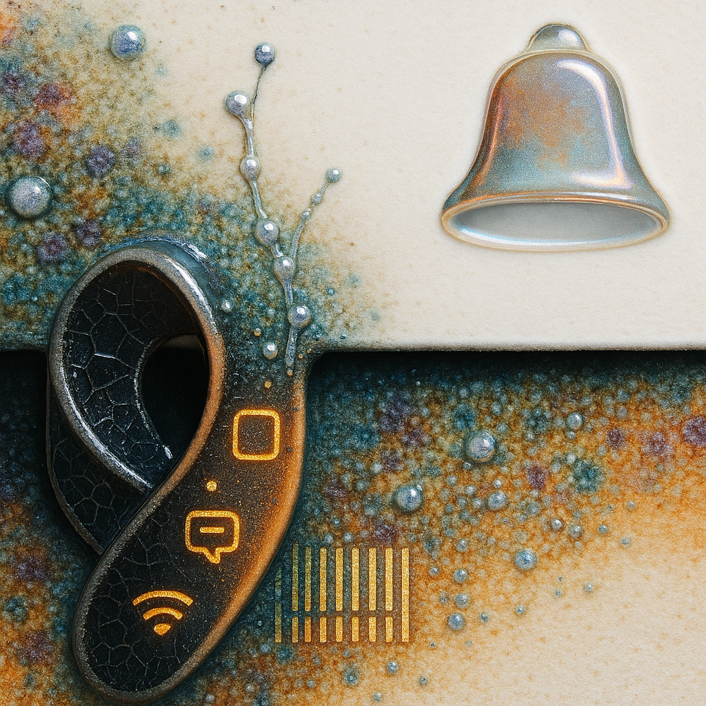 When Private Feeds Spill Into Shared Air I wanted to catch the split-second when a private loop becomes the room’s soundtrack, and the body-device seam blushes in public. I split the frame: below, a c