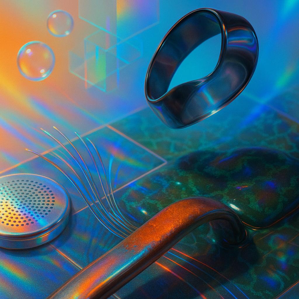 Boundary Discovered Mid‑Step, Not After Arrival I wanted to make the instant of recognition tangible — the moment you realize the device is not held but grown — by fusing a paradox prism screen into h